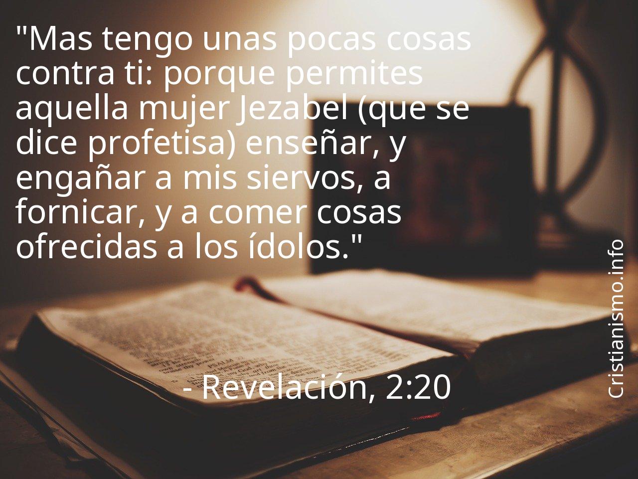 Reflexionar en torno a lo que se refiere el versículo Apocalipsis, 2:20 nos resulta fundamental para llegar a a ser más agradables a los ojos de el Creador del Cielo y de la Tierra y a aproximarnos más a Dios, por esa razón es conveniente servirse del versículo Apocalipsis, 2:20 siempre que precisemos que la palabra de Dios, Nuestro Señor nos indique el camino a seguir para saber en qué forma acturar o para traer la paz a nuestros corazones y almas.