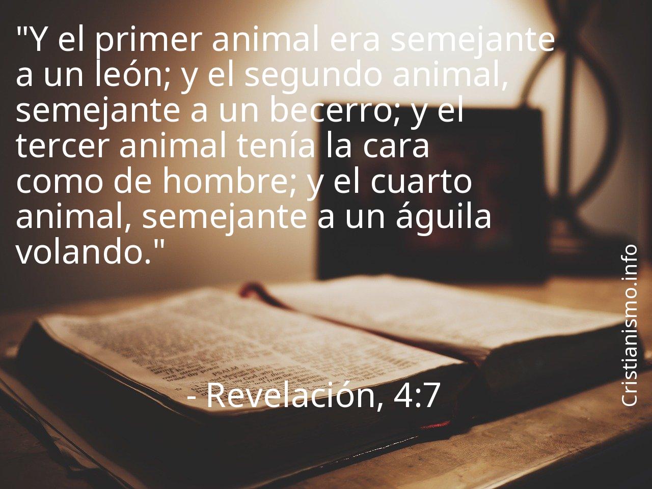 El versiculo Apocalipsis, 4:7 de los Textos Sagrados que componen la Biblia consiste en algo que hay que tener continuamente presente con el fin de analizarlo y pensar sobre él.Tal vez sería adecuado preguntarse ¿Qué trataba de decirnos Dios Nuestro Señor con el versículo Apocalipsis, 4:7? ¿En qué coyunturas de nuestro día a día seremos capaces de poner en práctica aquello que hemos alcanzado a saber gracias al versículo Apocalipsis, 4:7 de la Santa Biblia?