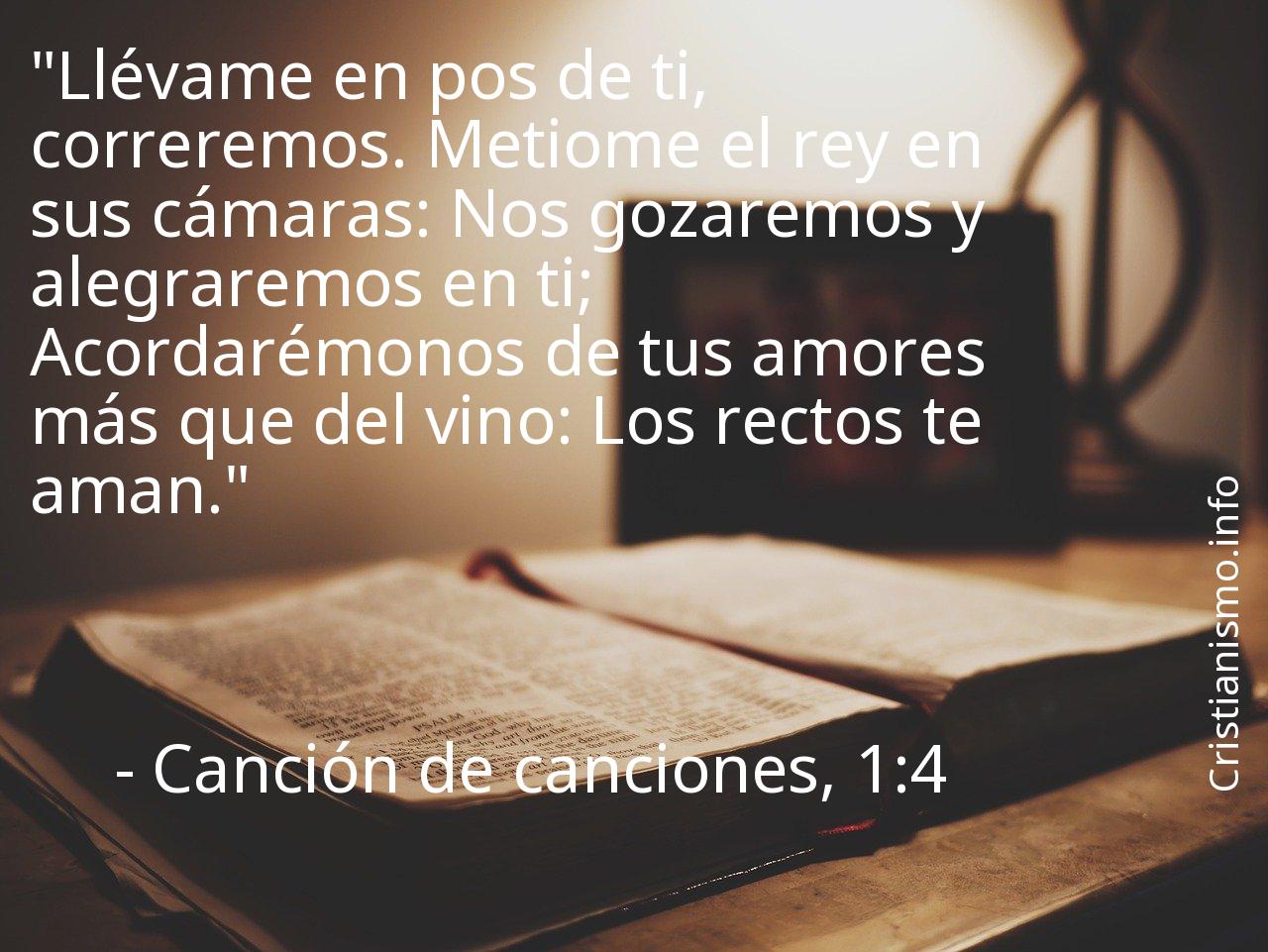 El versiculo Cantar de los Cantares, 1:4 de La Sagrada Biblia consiste en algo que es conveniente tener en todo momento presente con el fin de hacer una reflexión sobre él.Probablemente deberíamos preguntarnos ¿Qué trataba de manifestarnos Dios, Creador del Cielo y de la Tierra con el versículo Cantar de los Cantares, 1:4? ¿Cuáles son las ocasiones de nuestra vida cotidiana en que podemos aprovechar lo que hemos llegado a saber gracias al versículo Cantar de los Cantares, 1:4 de La Sagrada Biblia?
