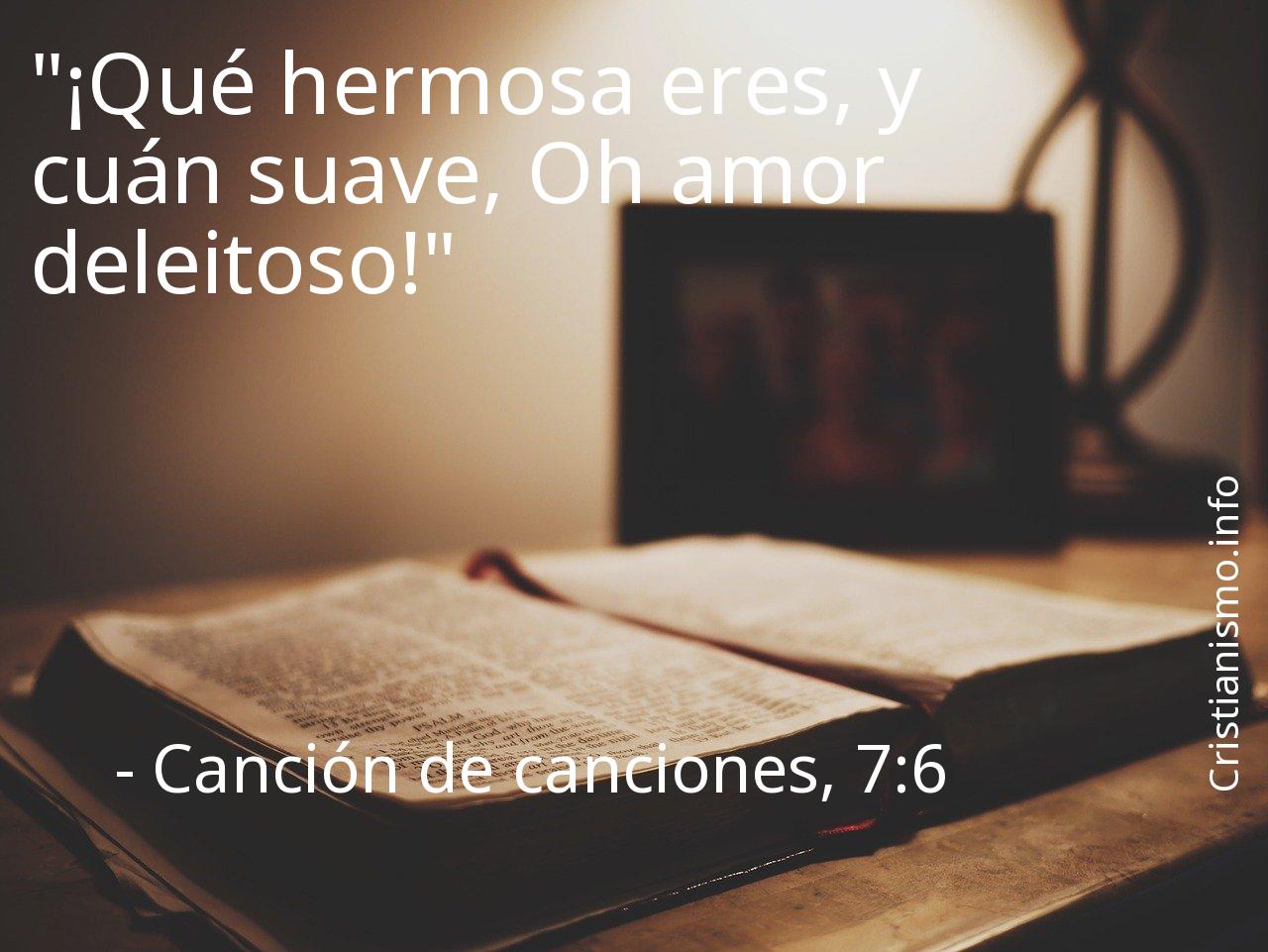 Debemos tomar siempre en consideración el versículo Cantar de los Cantares, 7:6 de los Textos Sagrados que componen la Biblia con el propósito de reflexionar sobre él. Acaso deberíamos hacernos la pregunta ¿Qué quiso proponernos Dios Padre con el versículo Cantar de los Cantares, 7:6? ¿Cuáles son los momentos de nuestra vida cotidiana en que podemos hacer valer lo que hemos alcanzado a saber gracias al versículo Cantar de los Cantares, 7:6 de la Santa Biblia?