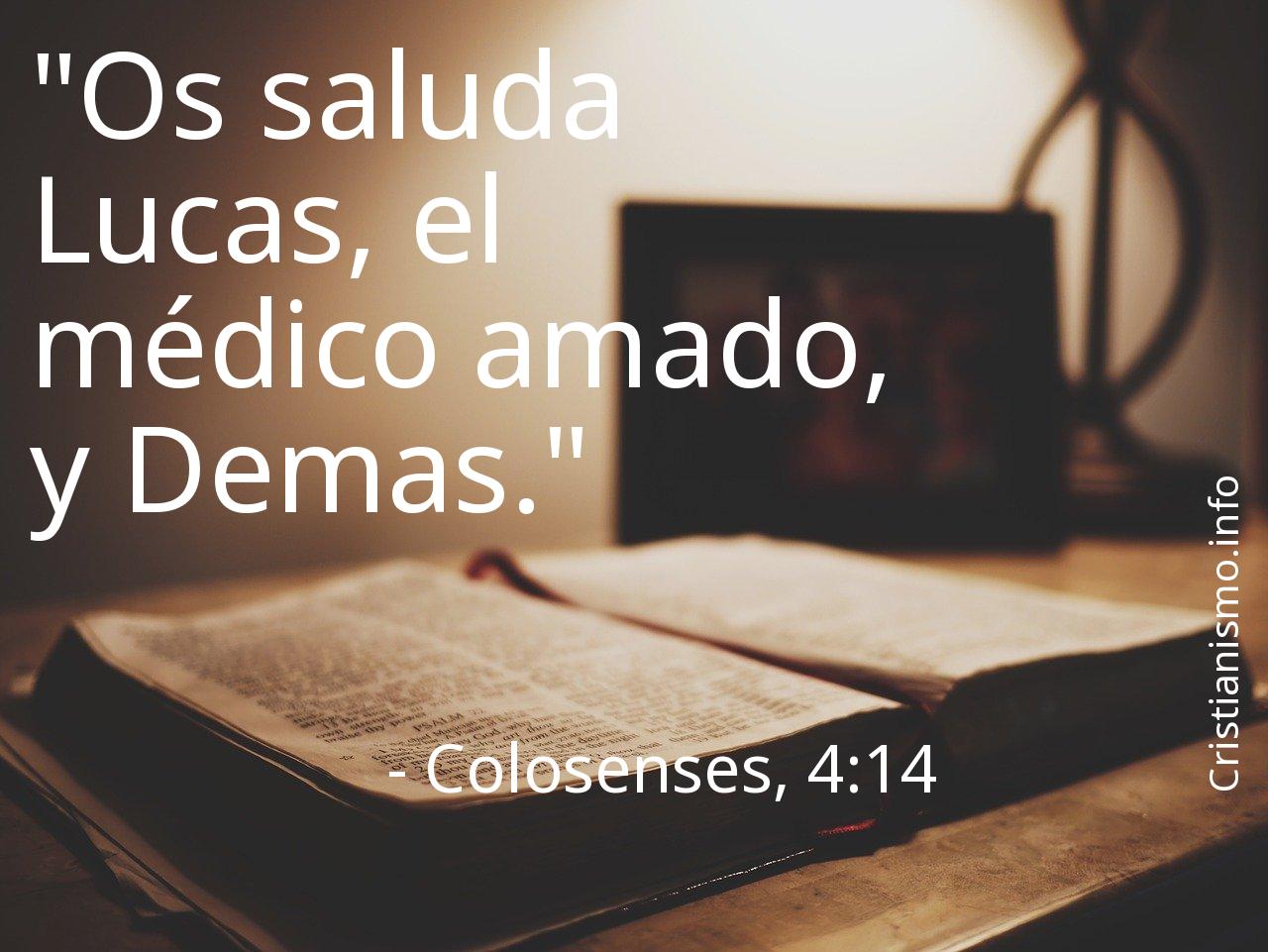 El versiculo Colosenses, 4:14 de los Textos Sagrados que componen la Biblia consiste en algo que deberíamos tomar constantemente en consideración con el objetivo de reflexionar en torno a él.Probablemente sería adecuado preguntarse ¿Qué quiso manifestarnos Dios, Creador del Cielo y de la Tierra con el versículo Colosenses, 4:14? ¿En qué momentos de nuestra vida cotidiana podemos hacer valer aquello que aprendemos gracias al versículo Colosenses, 4:14 de La Biblia?