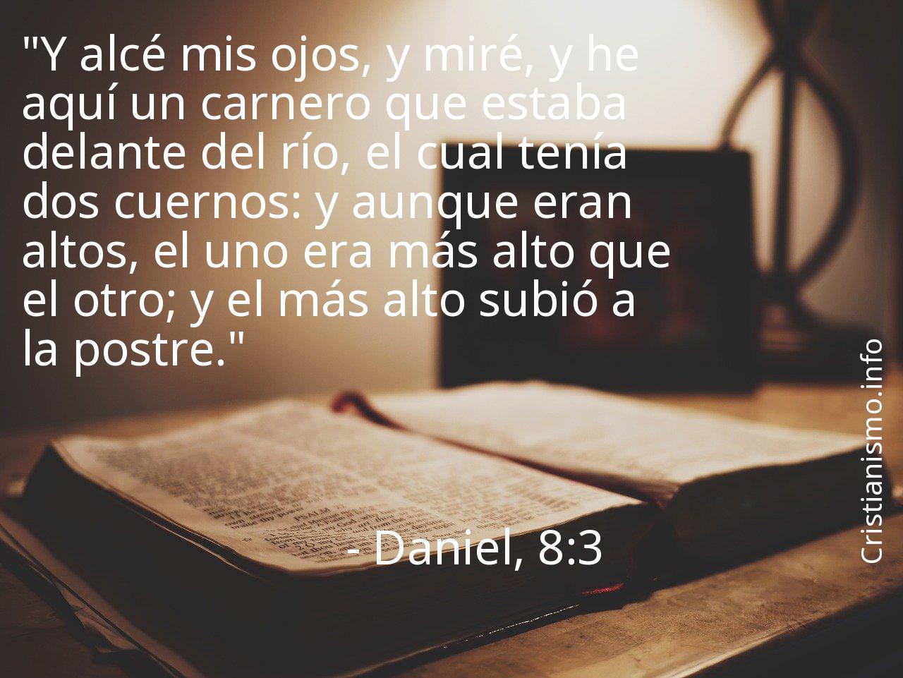 Reflexionar sobre el versículo Daniel, 8:3 es un gran aporte que nos permite a ser mejores cristianos y a elevar nuestra alma hacia Dios, por esa cuestión es oportuno recurrir al versículo Daniel, 8:3 cada vez que precisemos que la palabra de Dios, Nuestro Señor nos indique el camino a seguir y así saber en qué forma acturar o para traer paz a nuestro espíritu.