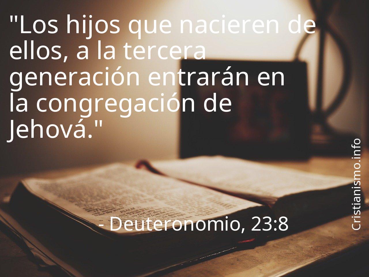 Hacer un análisis profundo en relación con el versículo Deuteronomio, 23:8 nos supone una ayuda a ser capaces de acercarnos más al mensaje de Nuestro Señor y a elevar nuestra alma hacia Dios, por eso es conveniente apoyarse en el versículo Deuteronomio, 23:8 cuando creamos que necesitemos palabras que nos inspiren y guíen de modo que podamos saber en qué forma acturar o para traer la serenidad a nuestro espíritu.