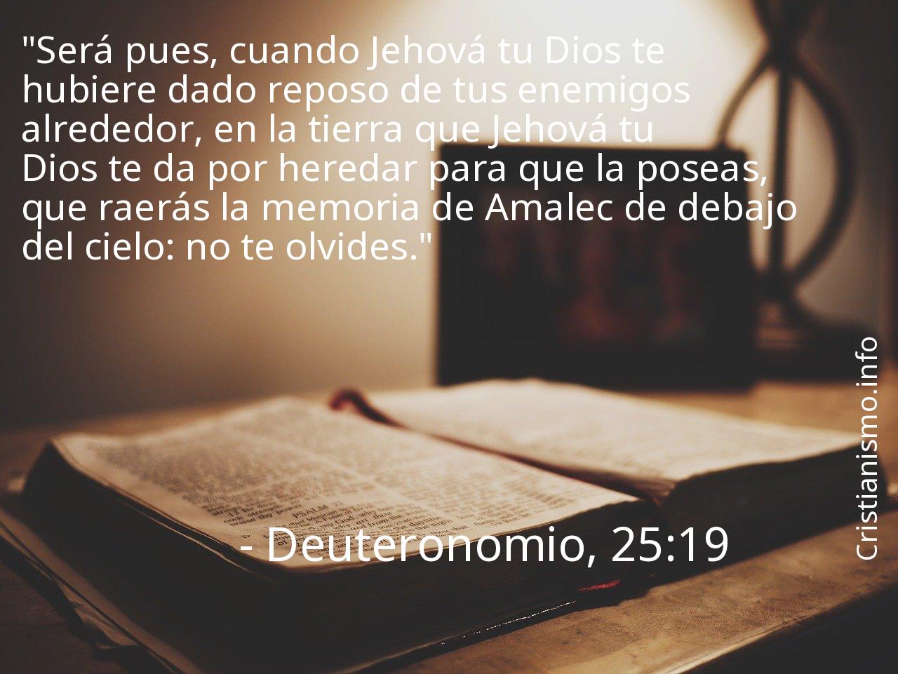 El versiculo Deuteronomio, 25:19 de La Santa Biblia es algo que debemos tomar constantemente en cuenta de manera que podamos meditar en torno a él. ¿Qué pretendía manifestarnos Dios, Creador del Cielo y de la Tierra con el versículo Deuteronomio, 25:19? ¿Cuáles son los momentos de nuestro día a día en que seremos capaces de poner en práctica aquello que hemos aprendido gracias al versículo Deuteronomio, 25:19 de La Sagrada Biblia?