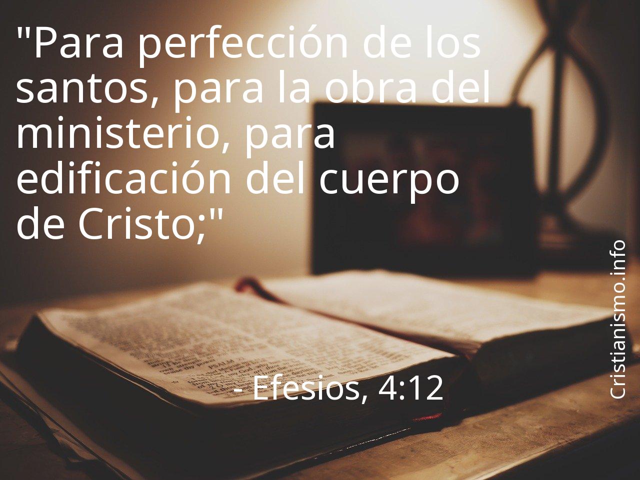 Dedicar tiempo a la meditación acerca de el versículo Efesios, 4:12 nos es de gran ayuda a ser más agradables a los ojos de el Creador del Cielo y de la Tierra y a avanzar en nuestro camino hacia la Gracia de Dios, esa es la razón por la cual es oportuno servirse del versículo Efesios, 4:12 todas las veces que precisemos que la palabra de Dios, Nuestro Señor nos indique el camino a seguir para saber qué pasos dar o para traer la paz a nuestros corazones y almas.