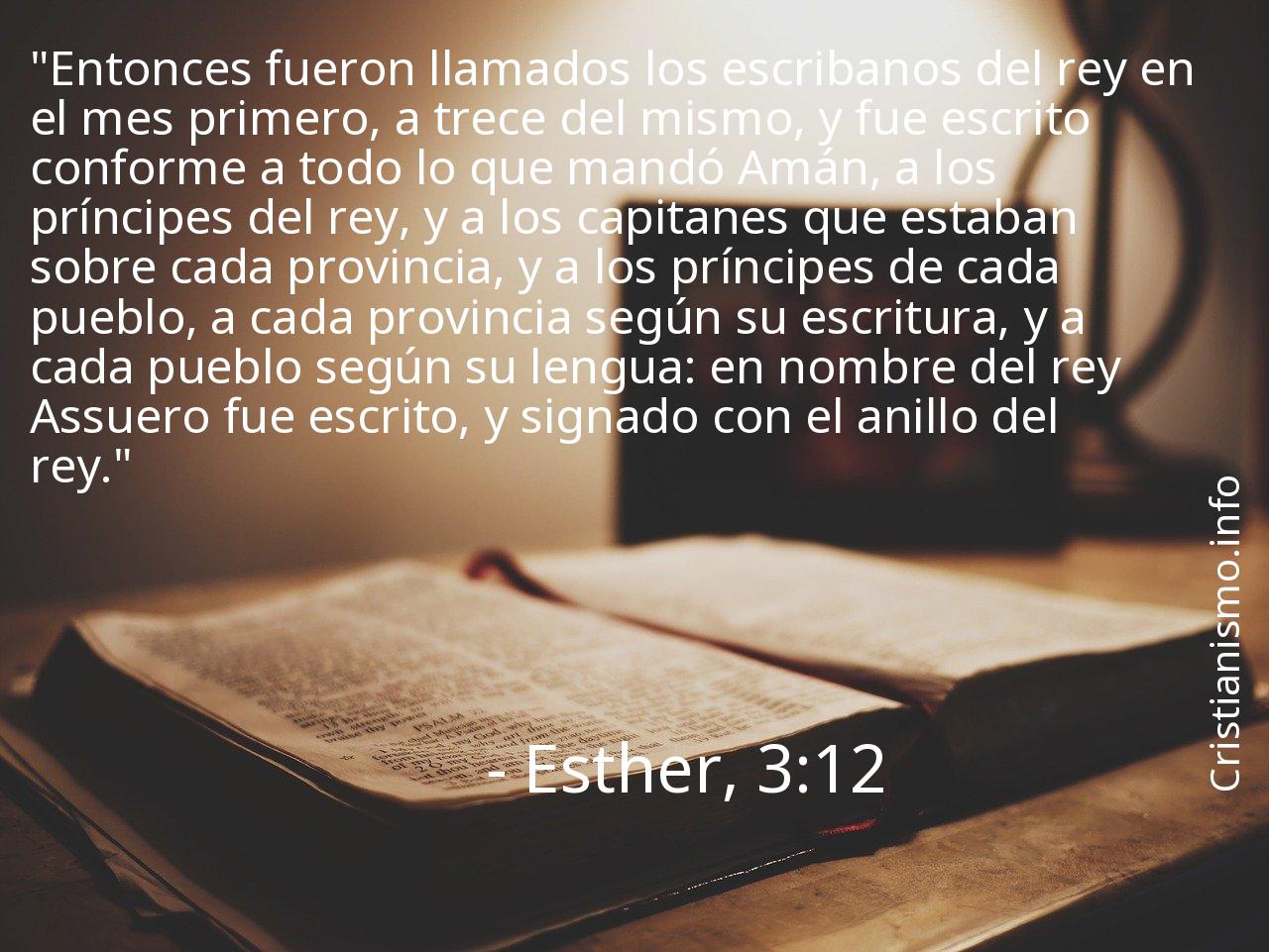 Es aconsejable tomar constantemente en cuenta el versículo Ester, 3:12 de La Biblia con el propósito de analizarlo y pensar sobre él.Seguramente sería acertado cuestionarse ¿Qué intentaba manifestarnos Nuestro Padre que está en los Cielos con el versículo Ester, 3:12? ¿Cuáles son las ocasiones de nuestra vida cotidiana en que tenemos la oportunidad de hacer valer aquello que hemos llegado a saber gracias al versículo Ester, 3:12 de la Santa Biblia?