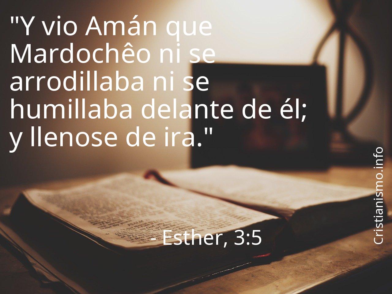 Hay que tomar constantemente en cuenta el versículo Ester, 3:5 de La Sagrada Biblia de tal forma que podamos reflexionar sobre él. ¿Qué trataba de proponernos Dios Padre con el versículo Ester, 3:5? ¿Cuáles son las ocasiones de nuestra vida diaria en que seremos capaces de aplicar aquello que aprendemos gracias al versículo Ester, 3:5 de La Sagrada Biblia?