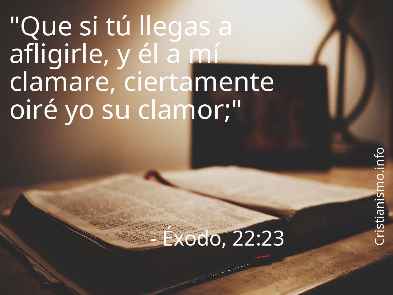 Meditar sobre el versículo Éxodo, 22:23 nos supone una ayuda a ser mejores personas y a avanzar en nuestro camino hacia la Gracia de Dios, por eso es útil apoyarse en el versículo Éxodo, 22:23 cada vez que nos pueda servir de guía de modo que podamos saber cómo actuar o para traer paz a nuestros corazones.