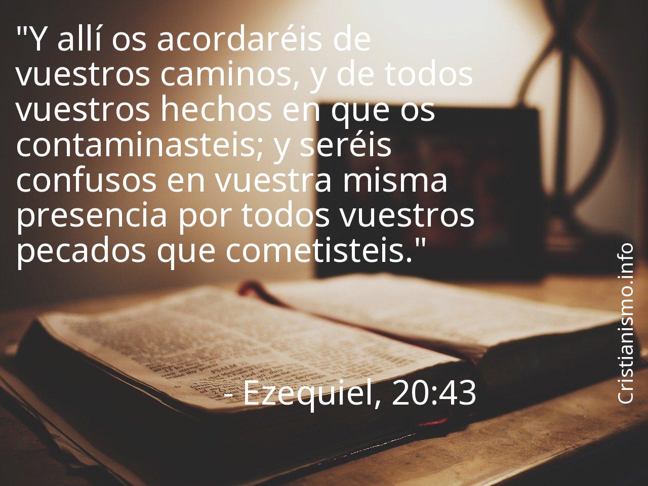 Debemos tomar constantemente en cuenta el versículo Ezequiel, 20:43 de La Biblia con el fin de hacer una reflexión en torno a él. Acaso deberíamos preguntarnos ¿Qué trataba de decirnos Dios, Creador del Cielo y de la Tierra con el versículo Ezequiel, 20:43? ¿Cuáles son los momentos de nuestra vida diaria en que seremos capaces de hacer valer lo que hemos aprendido gracias al versículo Ezequiel, 20:43 de La Sagrada Biblia?