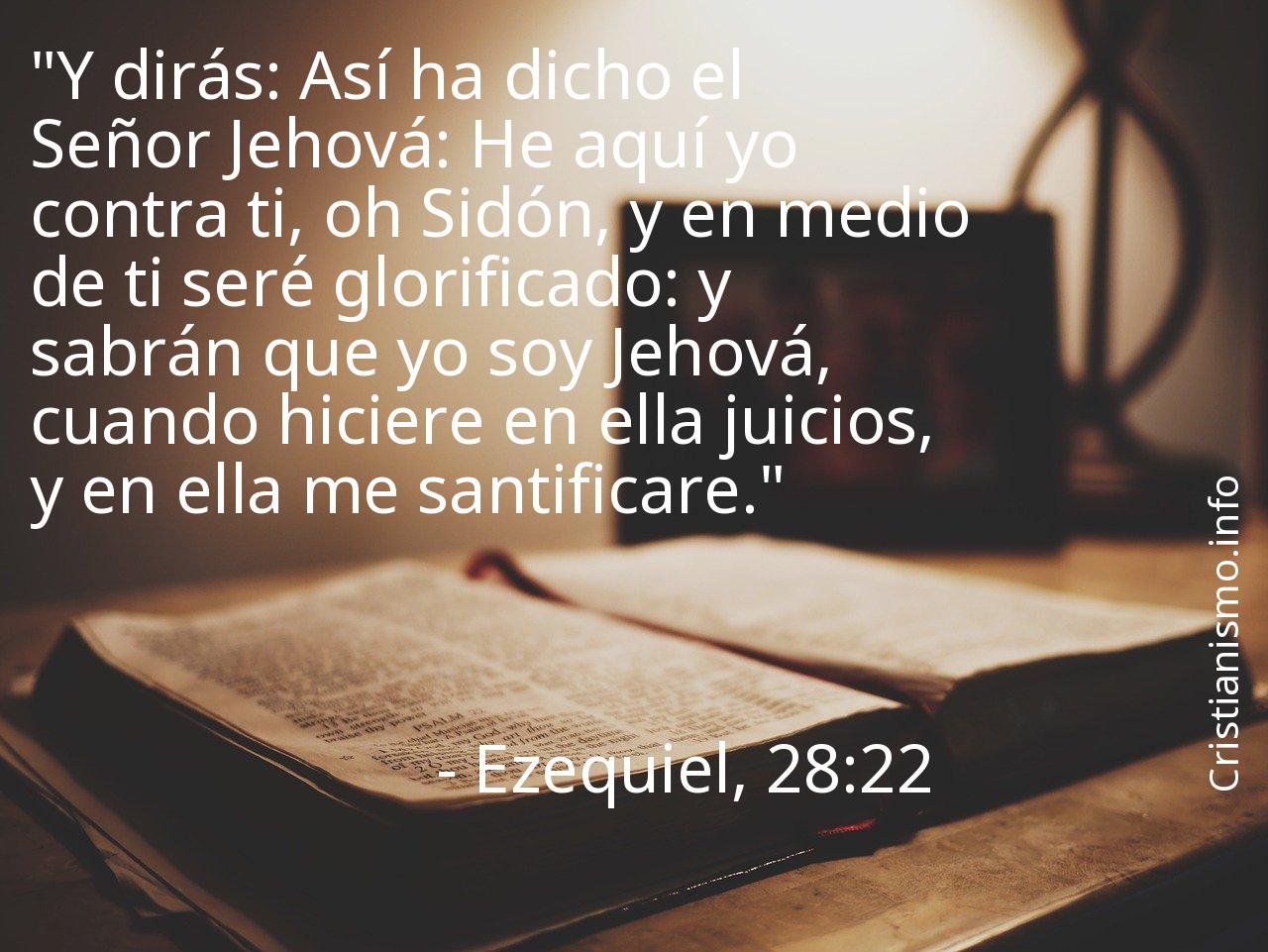 Hay que tener continuamente presente el versículo Ezequiel, 28:22 de La Santa Biblia con el propósito de hacer una reflexión sobre él. ¿Qué pretendía decirnos Dios, Creador del Cielo y de la Tierra con el versículo Ezequiel, 28:22? ¿Cuáles son los momentos de nuestra vida cotidiana en que podemos hacer valer lo que hemos aprendido gracias al versículo Ezequiel, 28:22 de Las Sagradas Escrituras?