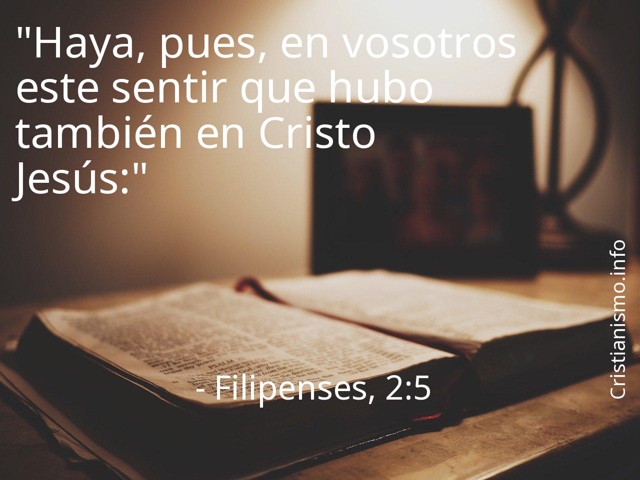 El versiculo Filipenses, 2:5 de La Sagrada Biblia es algo que nos conviene tomar en todo momento en consideración con el propósito de analizarlo y pensar acerca de él.Probablemente sería adecuado preguntarse ¿Qué pretendía manifestarnos el Señor con el versículo Filipenses, 2:5? ¿Cuáles serán las coyunturas de nuestro día a día en que podemos llevar a la práctica aquello que aprendemos gracias al versículo Filipenses, 2:5 de Las Sagradas Escrituras?