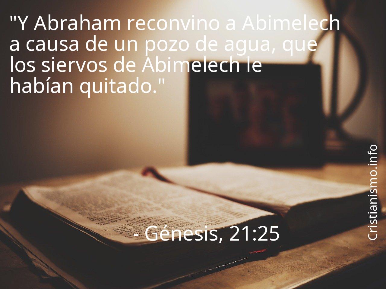 Es conveniente tomar en todo momento en consideración el versículo Génesis, 21:25 de La Santa Biblia para reflexionar sobre él. ¿Qué quiso decirnos el Señor con el versículo Génesis, 21:25? ¿En qué coyunturas de nuestro día a día tenemos la oportunidad de recurrir a aquello que hemos alcanzado a saber gracias al versículo Génesis, 21:25 de La Biblia?