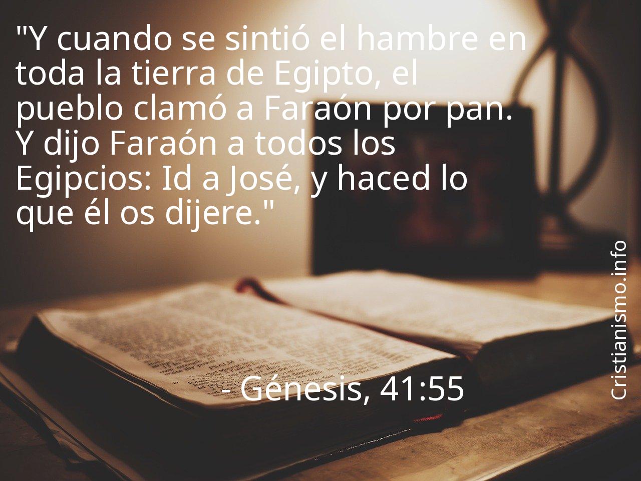 El versiculo Génesis, 41:55 de La Biblia es algo que hay que tomar continuamente en cuenta de tal forma que podamos meditar sobre él.Seguramente sería adecuado preguntarse ¿Qué quiso manifestarnos el Señor con el versículo Génesis, 41:55? ¿Cuáles son los momentos de nuestro día a día en que podemos recurrir a lo que aprendemos gracias al versículo Génesis, 41:55 de Las Sagradas Escrituras?