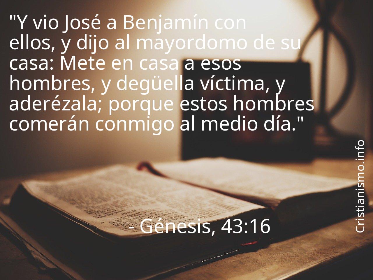 Discurrir y recapacitar acerca de el versículo Génesis, 43:16 nos supone una ayuda a ser más agradables a los ojos de el Creador del Cielo y de la Tierra y a avanzar en nuestro camino hacia la Gracia de Dios, por ese motivo es aconsejable servirse del versículo Génesis, 43:16 cuando creamos que necesitemos palabras que nos inspiren y guíen para saber cómo actuar o para traer el sosiego a nuestros corazones y almas.