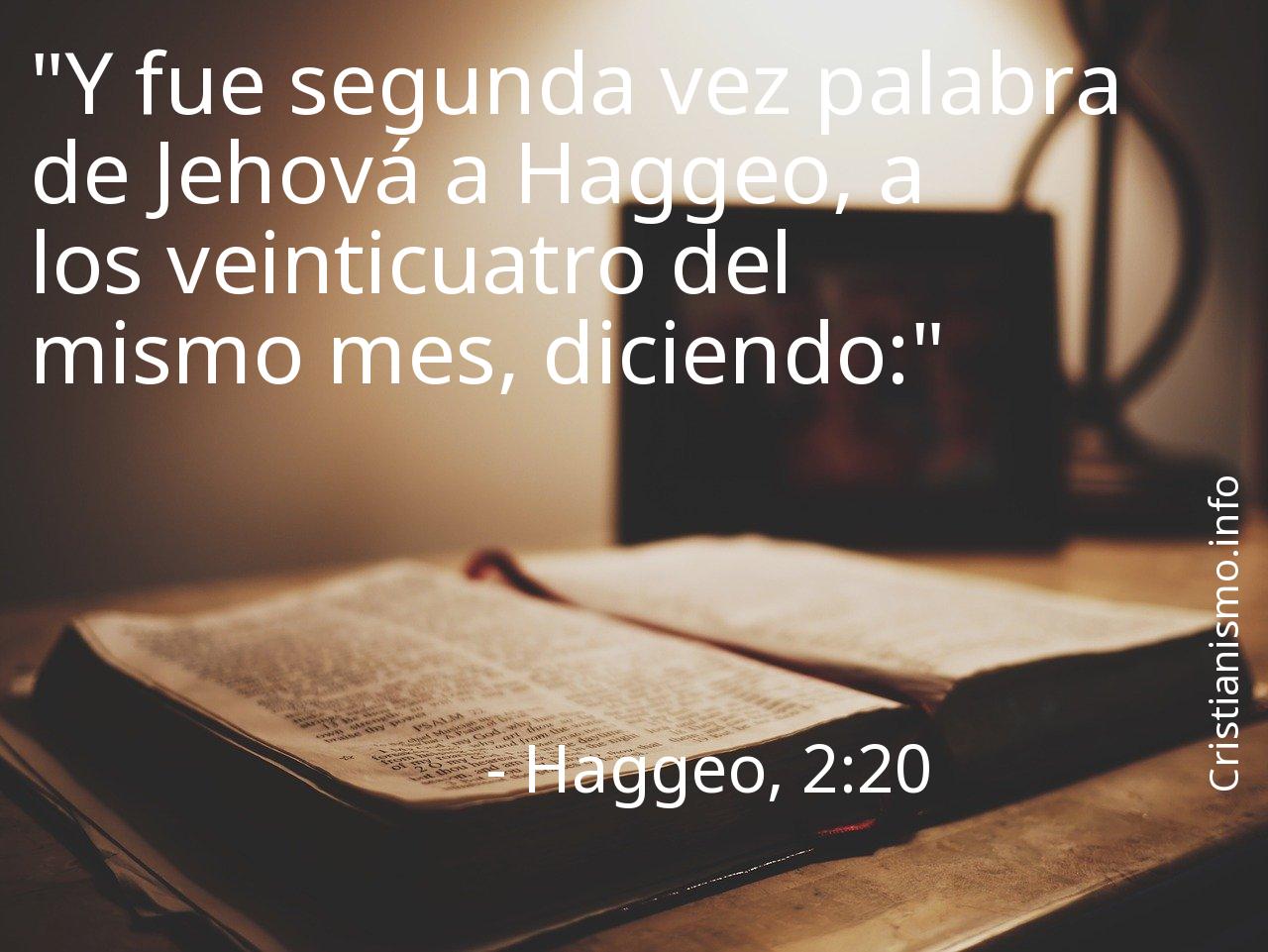 El versiculo Hageo, 2:20 de La Sagrada Biblia consiste en algo que es muy recomendable tomar continuamente en consideración de tal forma que podamos hacer una reflexión sobre él.Tal vez deberíamos preguntarnos ¿Qué pretendía proponernos Dios, Creador del Cielo y de la Tierra con el versículo Hageo, 2:20? ¿En qué ocasiones de nuestro día a día seremos capaces de recurrir a lo que hemos alcanzado a saber gracias al versículo Hageo, 2:20 de La Sagrada Biblia?
