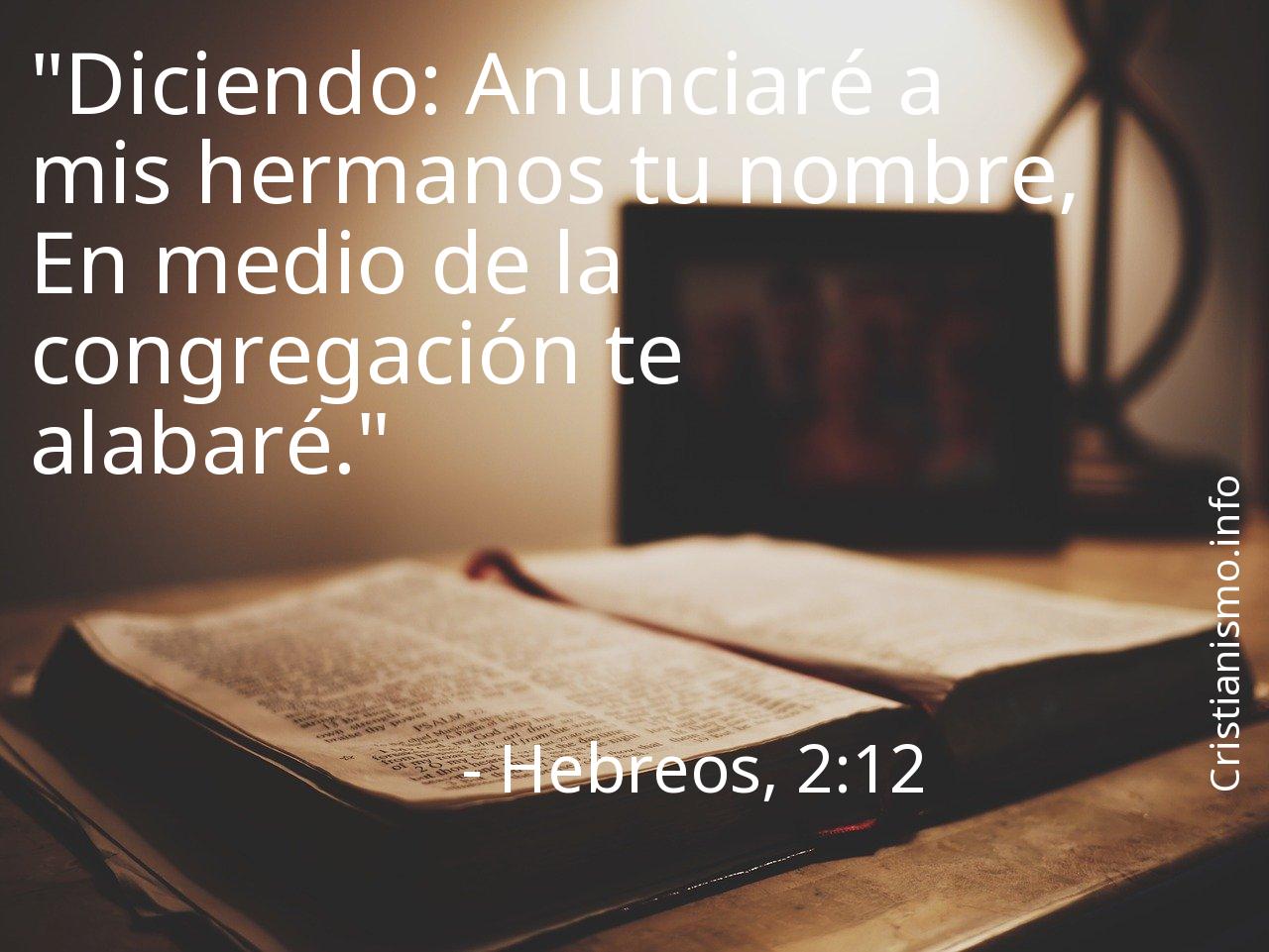 El versiculo Hebreos, 2:12 de los Textos Sagrados que componen la Biblia es algo que deberíamos tomar continuamente en consideración de tal forma que podamos reflexionar en torno a él.Tal vez deberíamos hacernos la pregunta ¿Qué quiso decirnos Nuestro Padre que está en los Cielos con el versículo Hebreos, 2:12? ¿Cuáles son los momentos de nuestra vida diaria en que podemos recurrir a aquello que hemos aprendido gracias al versículo Hebreos, 2:12 de La Sagrada Biblia?