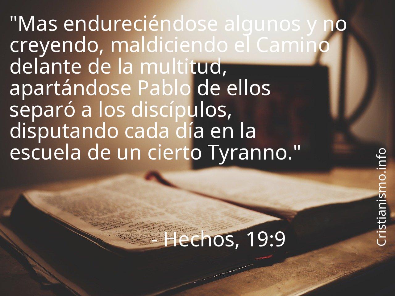 El versiculo Hechos, 19:9 de los Textos Sagrados que componen la Biblia consiste en algo que hay que tomar siempre en consideración con la finalidad de reflexionar en torno a él.Tal vez sería bueno preguntarse ¿Qué quiso proponernos Nuestro Padre que está en los Cielos con el versículo Hechos, 19:9? ¿En qué momentos de nuestra vida cotidiana tenemos la oportunidad de recurrir a lo que aprendemos gracias al versículo Hechos, 19:9 de la Santa Biblia?