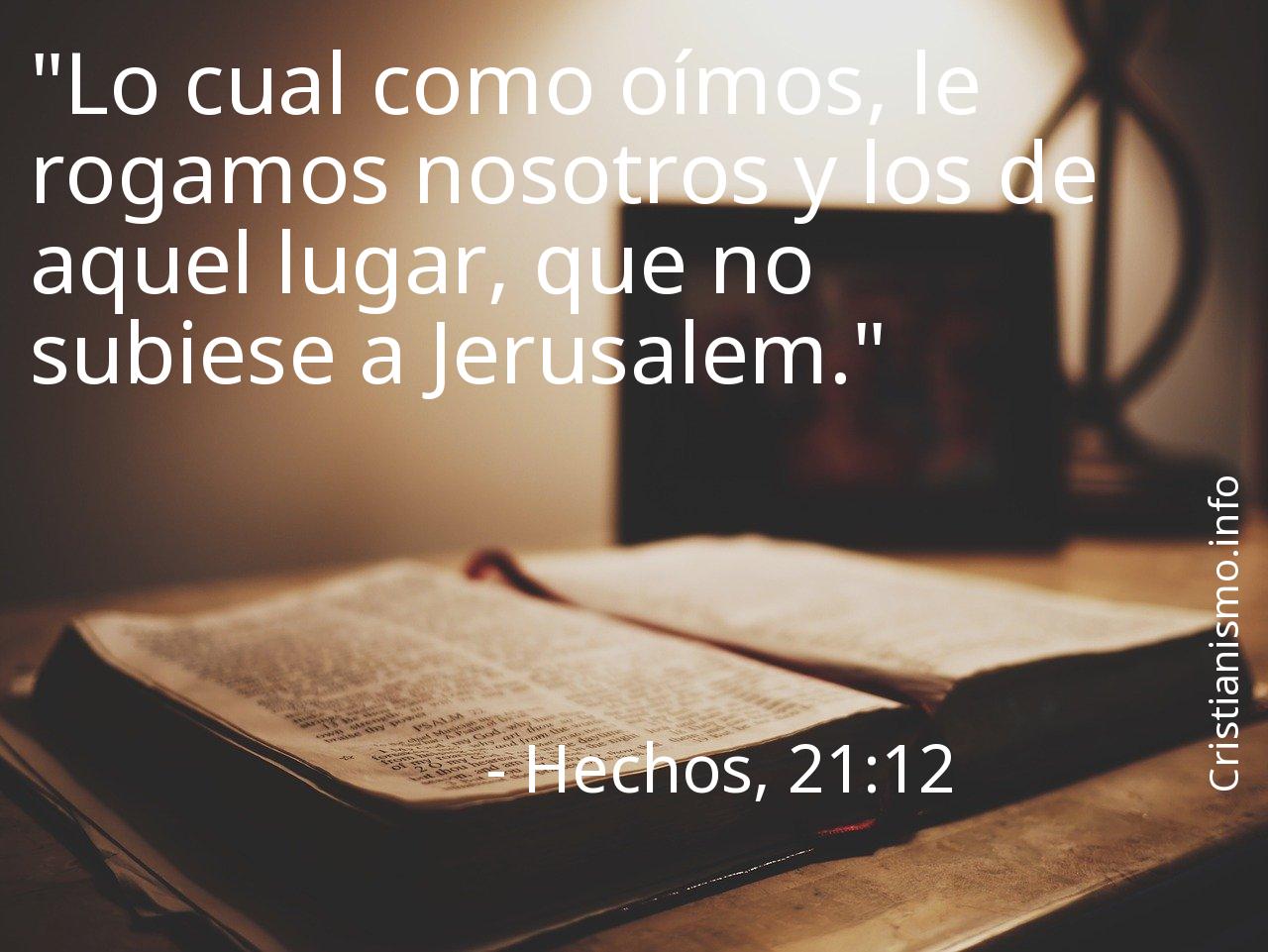 El versiculo Hechos, 21:12 de los Textos Sagrados que componen la Biblia es algo que es aconsejable tomar constantemente en cuenta con el objetivo de hacer una reflexión sobre él. ¿Qué quiso manifestarnos Dios Nuestro Señor con el versículo Hechos, 21:12? ¿En qué coyunturas de nuestra vida cotidiana seremos capaces de aprovechar lo que hemos llegado a saber gracias al versículo Hechos, 21:12 de Las Sagradas Escrituras?