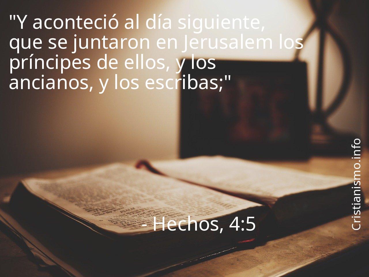Es conveniente tomar en todo momento en cuenta el versículo Hechos, 4:5 de los Textos Sagrados que componen la Biblia a fin de analizarlo y pensar en torno a él.Tal vez sería acertado cuestionarse ¿Qué pretendía proponernos Dios Padre con el versículo Hechos, 4:5? ¿En qué coyunturas de nuestra vida diaria podemos aprovechar lo que hemos aprendido gracias al versículo Hechos, 4:5 de la Santa Biblia?