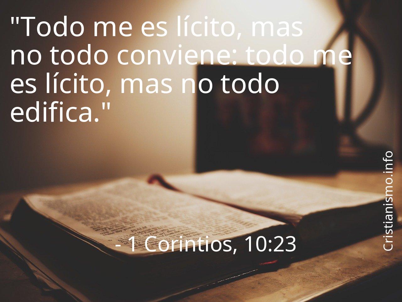 Deberíamos tomar siempre en consideración el versículo 1 Corintios, 10:23 de La Sagrada Biblia con la finalidad de analizarlo y pensar en torno a él.Quizás deberíamos preguntarnos ¿Qué quiso decirnos Nuestro Padre que está en los Cielos con el versículo 1 Corintios, 10:23? ¿Cuáles son las ocasiones de nuestro día a día en que seremos capaces de recurrir a aquello que hemos alcanzado a saber gracias al versículo 1 Corintios, 10:23 de La Sagrada Biblia?