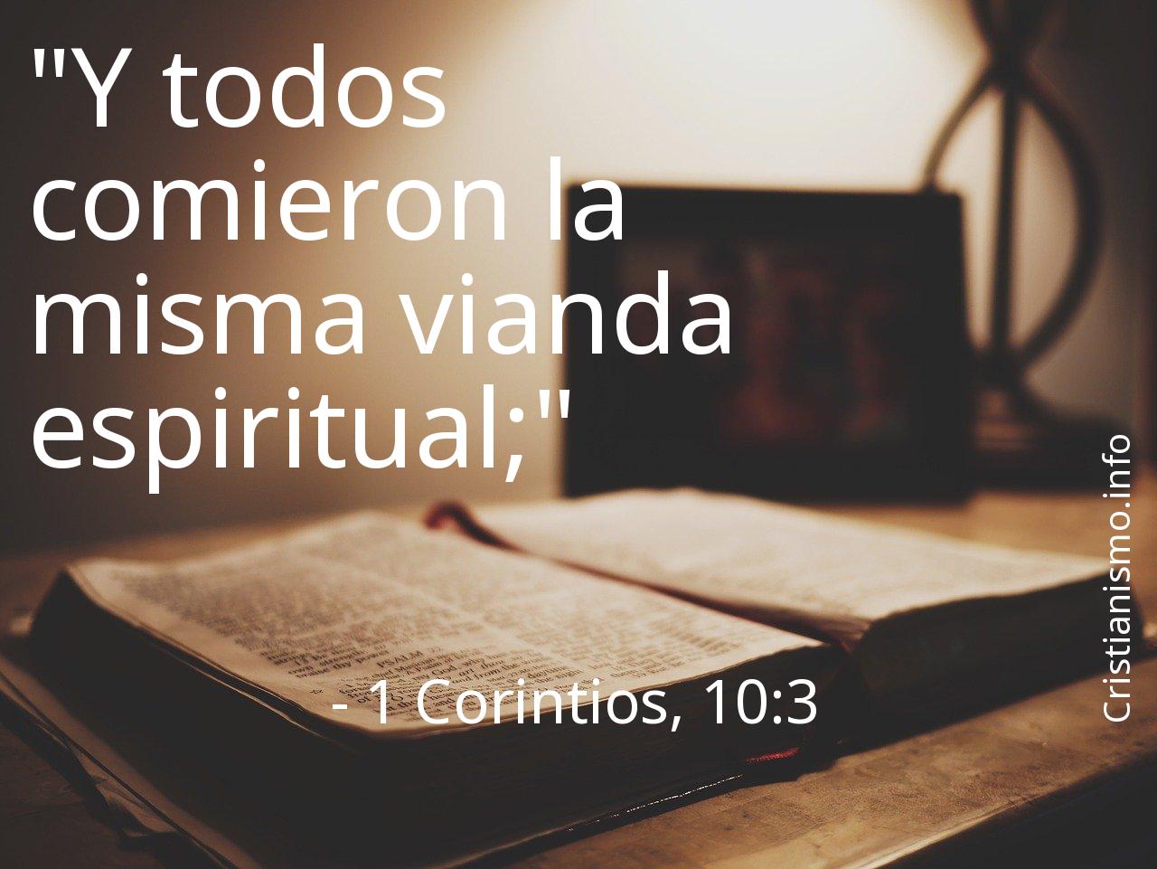El versiculo 1 Corintios, 10:3 de los Textos Sagrados que componen la Biblia es algo que nos conviene tener constantemente presente de manera que podamos reflexionar sobre él.Quizás deberíamos preguntarnos ¿Qué pretendía proponernos Nuestro Padre Todopoderoso con el versículo 1 Corintios, 10:3? ¿Cuáles son las ocasiones de nuestra vida cotidiana en que seremos capaces de aprovechar aquello que aprendemos gracias al versículo 1 Corintios, 10:3 de la Santa Biblia?