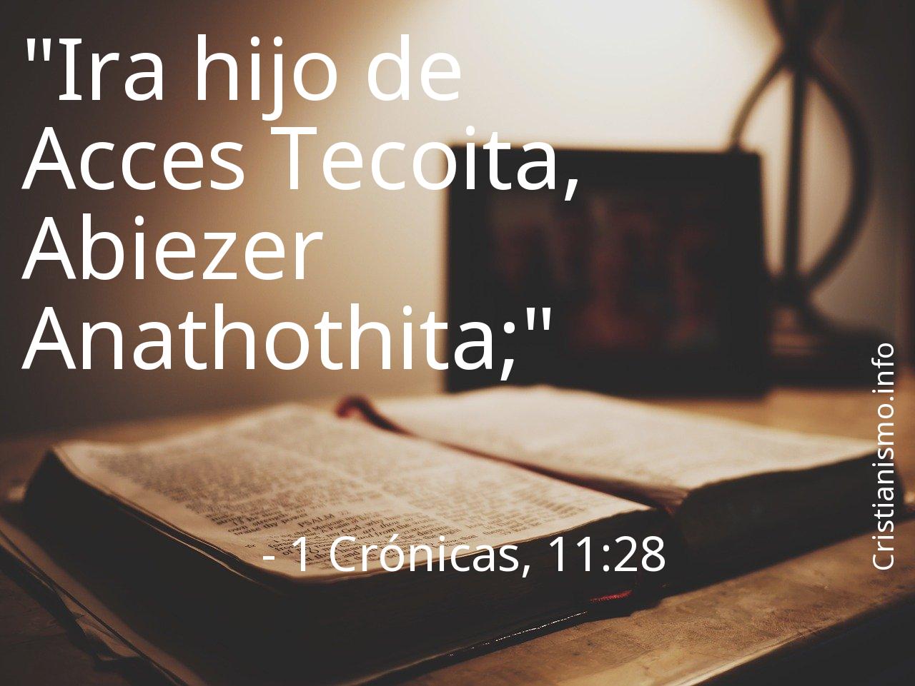 El versiculo 1 Crónicas, 11:28 de La Biblia consiste en algo que debemos tener en todo momento presente para hacer una reflexión en torno a él. ¿Qué trataba de decirnos Dios con el versículo 1 Crónicas, 11:28? ¿Cuáles son los momentos de nuestra vida diaria en que seremos capaces de recurrir a aquello que hemos aprendido gracias al versículo 1 Crónicas, 11:28 de La Biblia?