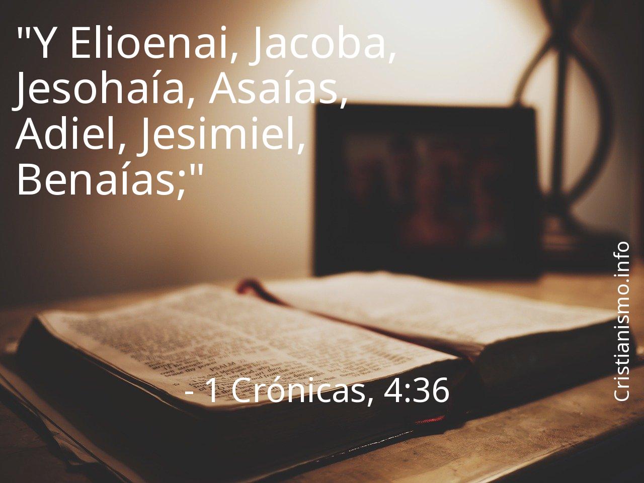 Es preciso tomar siempre en consideración el versículo 1 Crónicas, 4:36 de La Biblia a fin de meditar acerca de él.Tal vez deberíamos preguntarnos ¿Qué quiso proponernos Dios, Creador del Cielo y de la Tierra con el versículo 1 Crónicas, 4:36? ¿Cuáles son las ocasiones de nuestra vida cotidiana en que seremos capaces de recurrir a aquello que hemos llegado a saber gracias al versículo 1 Crónicas, 4:36 de La Biblia?
