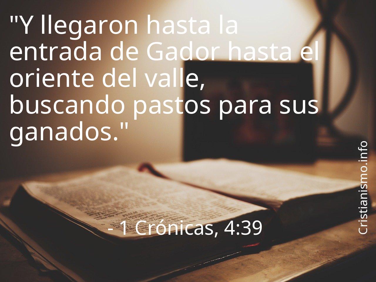 Hay que tomar continuamente en consideración el versículo 1 Crónicas, 4:39 de los Textos Sagrados que componen la Biblia con la finalidad de reflexionar en torno a él. Acaso deberíamos preguntarnos ¿Qué intentaba decirnos el Señor con el versículo 1 Crónicas, 4:39? ¿En qué ocasiones de nuestra vida diaria tenemos la oportunidad de hacer valer lo que hemos llegado a saber gracias al versículo 1 Crónicas, 4:39 de La Biblia?
