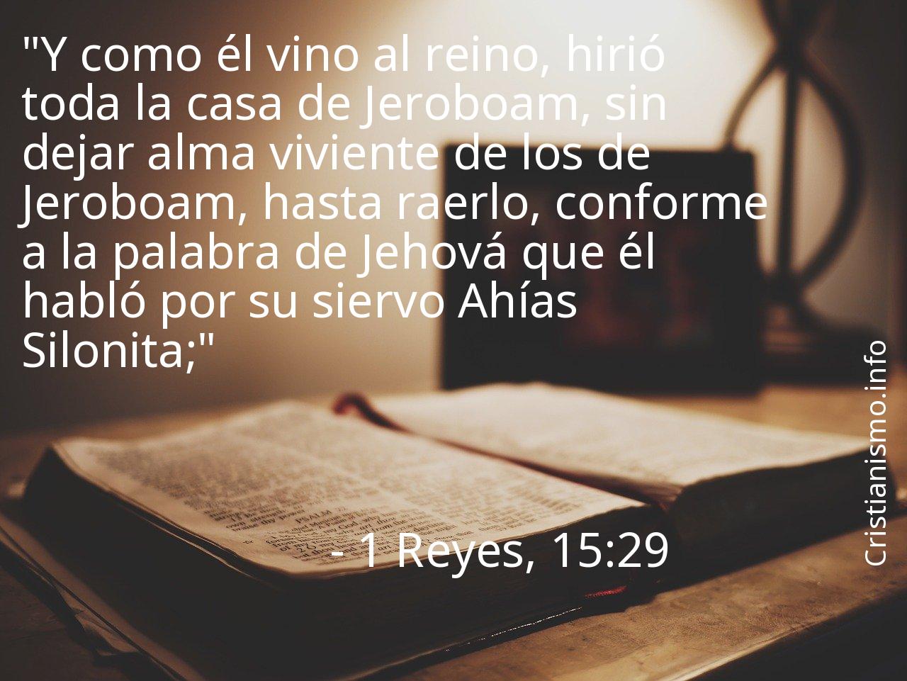 Nos conviene tener continuamente presente el versículo 1 Reyes, 15:29 de La Biblia con la finalidad de reflexionar acerca de él.Tal vez deberíamos preguntarnos ¿Qué pretendía decirnos el Señor con el versículo 1 Reyes, 15:29? ¿En qué ocasiones de nuestra vida diaria seremos capaces de recurrir a aquello que hemos alcanzado a saber gracias al versículo 1 Reyes, 15:29 de la Santa Biblia?
