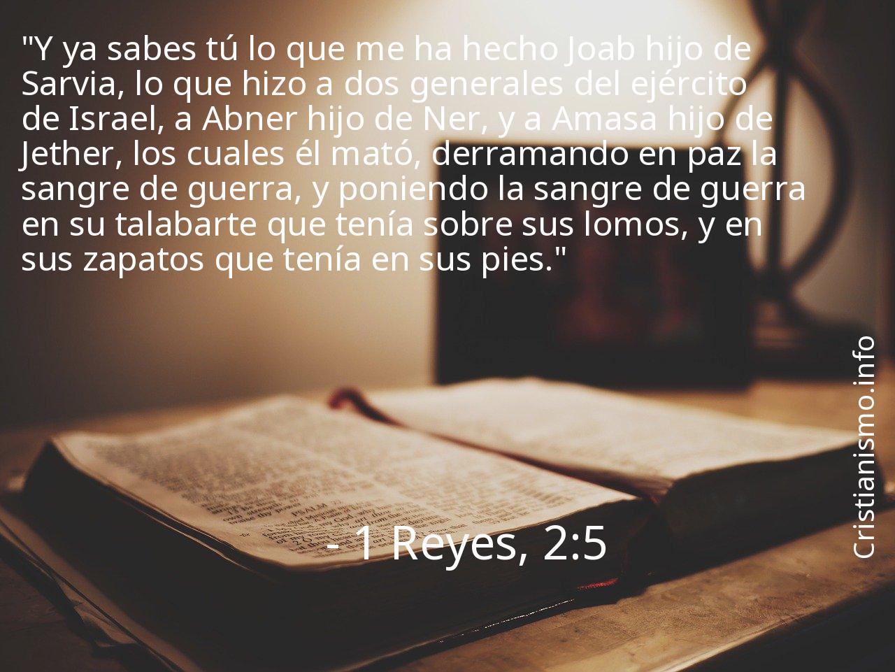 Dedicar tiempo a la meditación en torno a lo que se refiere el versículo 1 Reyes, 2:5 nos resulta fundamental para llegar a a ser capaces de acercarnos más al mensaje de Nuestro Señor y a acercarnos más a Dios, por esa cuestión es útil recurrir al versículo 1 Reyes, 2:5 siempre que pueda servirnos de guía de modo que podamos saber cómo proceder o para traer la paz a nuestros corazones y almas.