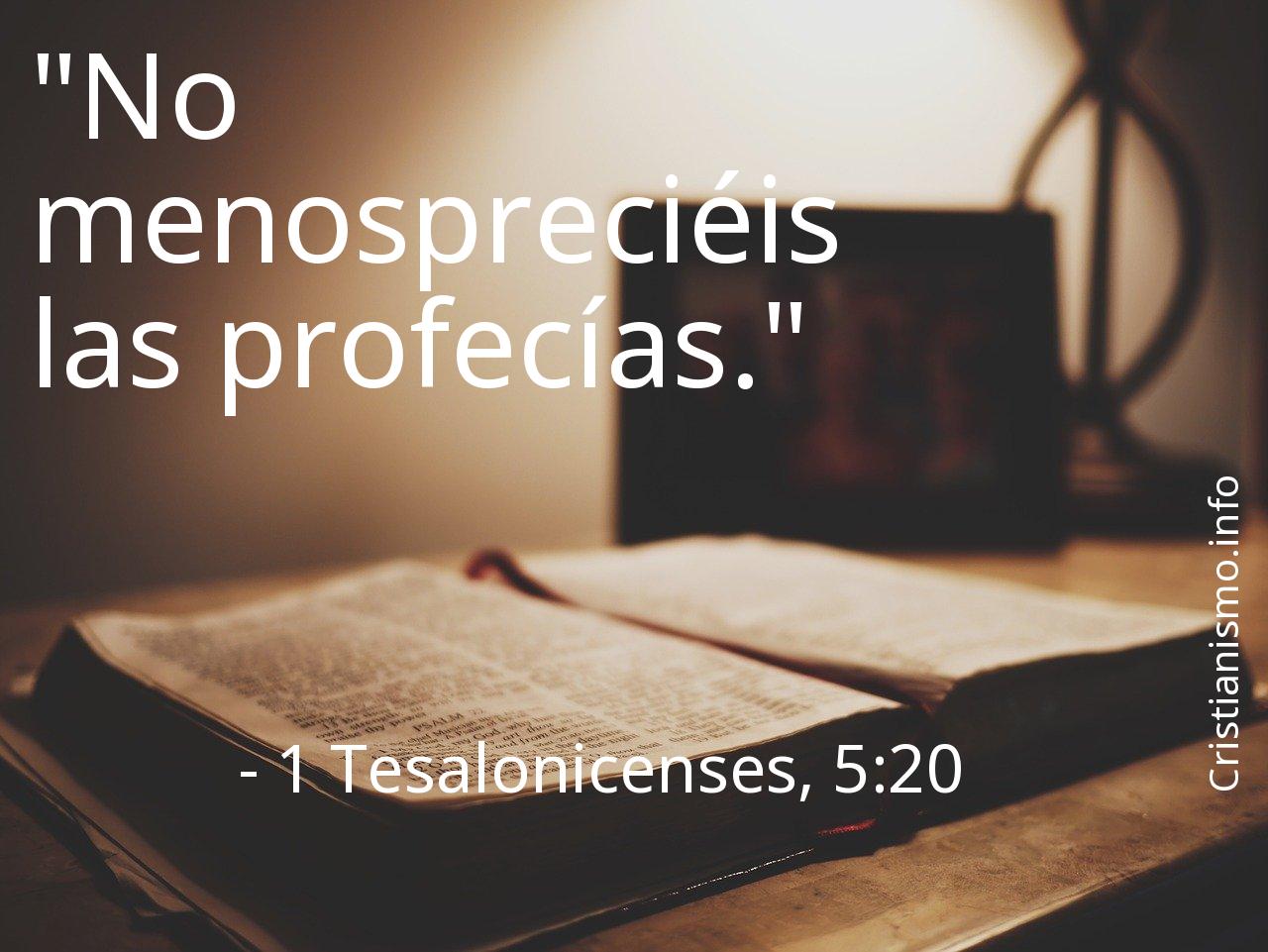 Es conveniente tomar constantemente en consideración el versículo 1 Tesalonicenses, 5:20 de La Biblia con la finalidad de analizarlo y pensar en torno a él. ¿Qué pretendía manifestarnos Dios, Creador del Cielo y de la Tierra con el versículo 1 Tesalonicenses, 5:20? ¿Cuáles serán las coyunturas de nuestra vida diaria en que tenemos la oportunidad de hacer valer aquello que hemos llegado a saber gracias al versículo 1 Tesalonicenses, 5:20 de La Biblia?