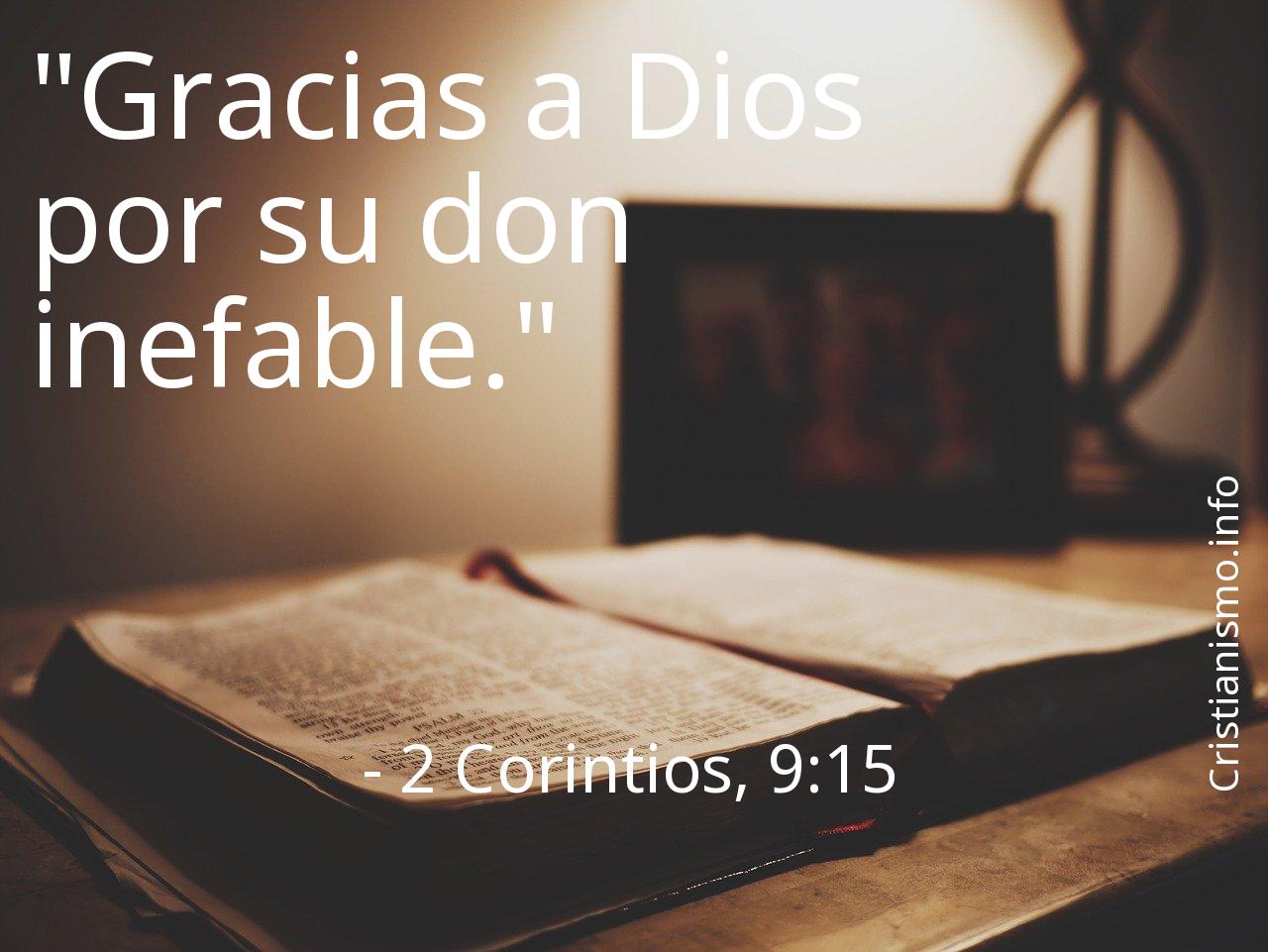 El hecho de reflexionar en torno a lo que se refiere el versículo 2 Corintios, 9:15 nos es de gran ayuda a ser más agradables a los ojos de el Creador del Cielo y de la Tierra y a avanzar en nuestro camino hacia la Gracia de Dios, por eso es aconsejable recurrir al versículo 2 Corintios, 9:15 todas las veces que necesitemos una luz que nos guíe y así saber cómo actuar o para traer la paz a nuestras almas.