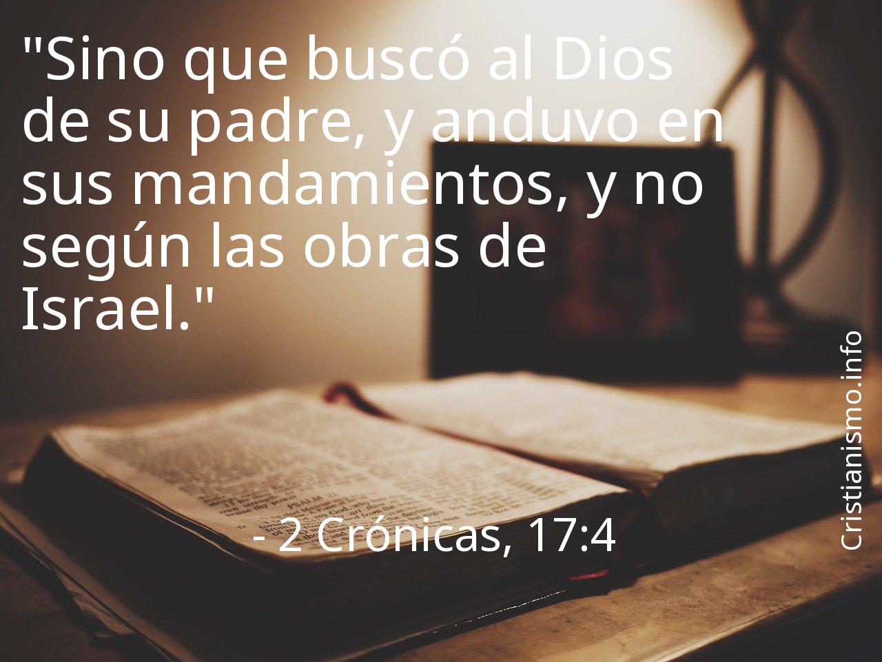 Hay que tener en todo momento presente el versículo 2 Crónicas, 17:4 de los Textos Sagrados que componen la Biblia con la finalidad de hacer una reflexión sobre él.Quizás sería bueno preguntarse ¿Qué trataba de manifestarnos Nuestro Padre que está en los Cielos con el versículo 2 Crónicas, 17:4? ¿Cuáles son las ocasiones de nuestra vida diaria en que tenemos la oportunidad de hacer valer lo que hemos aprendido gracias al versículo 2 Crónicas, 17:4 de Las Sagradas Escrituras?