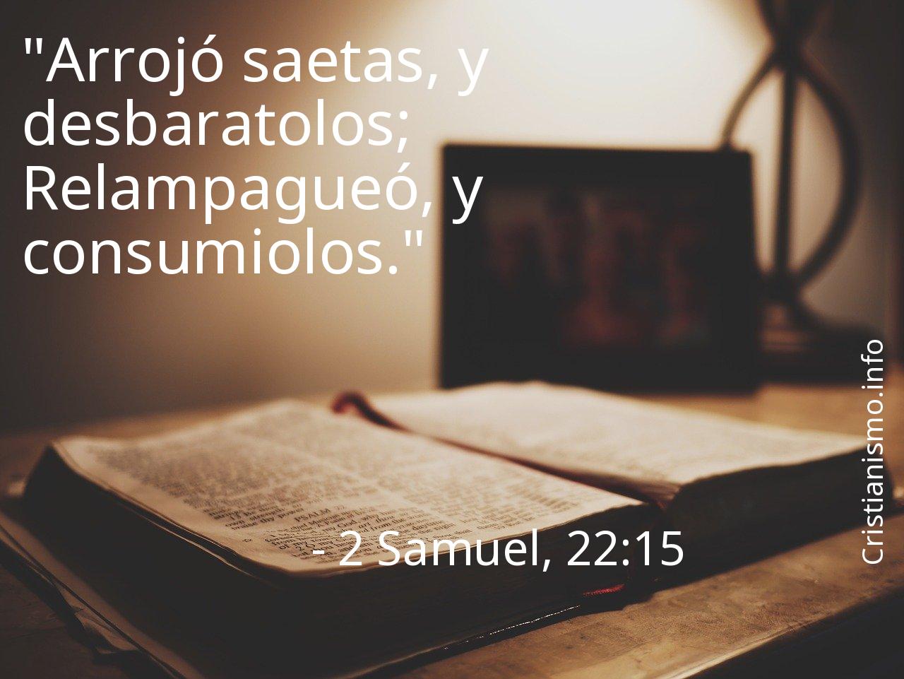Hacer un análisis profundo acerca de el versículo 2 Samuel, 22:15 nos supone una ayuda a ser mejores cristianos y a acercarnos más a Dios, por ese motivo es conveniente apoyarse en el versículo 2 Samuel, 22:15 todas y cada una de las veces que nos pueda servir de guía de modo que podamos saber qué pasos dar o para traer el sosiego a nuestros corazones.