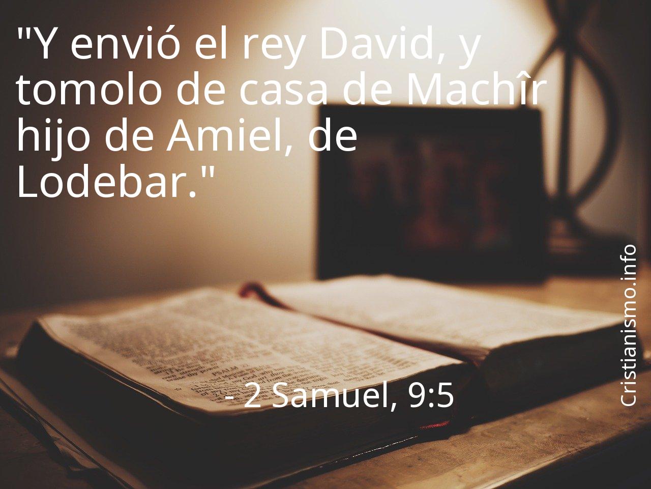 Meditar acerca de el versículo 2 Samuel, 9:5 nos ayuda a ser capaces de acercarnos más al mensaje de Nuestro Señor y a avanzar en nuestro camino hacia la Gracia de Dios, esa es la cuestión por la cual es bueno acudir al versículo 2 Samuel, 9:5 todas las veces que precisemos que la palabra de Dios, Nuestro Señor nos indique el camino a seguir y así saber cómo proceder o para traer el sosiego a nuestras almas.