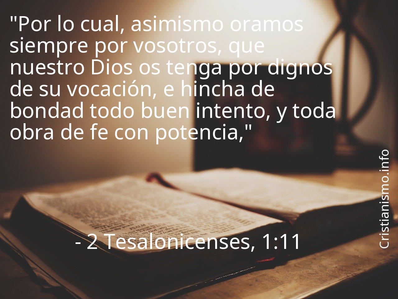 Es aconsejable tomar constantemente en cuenta el versículo 2 Tesalonicenses, 1:11 de los Textos Sagrados que componen la Biblia con el objetivo de meditar acerca de él.Quizás sería adecuado preguntarse ¿Qué intentaba manifestarnos Dios con el versículo 2 Tesalonicenses, 1:11? ¿En qué coyunturas de nuestro día a día tenemos la oportunidad de recurrir a aquello que hemos alcanzado a saber gracias al versículo 2 Tesalonicenses, 1:11 de la Santa Biblia?