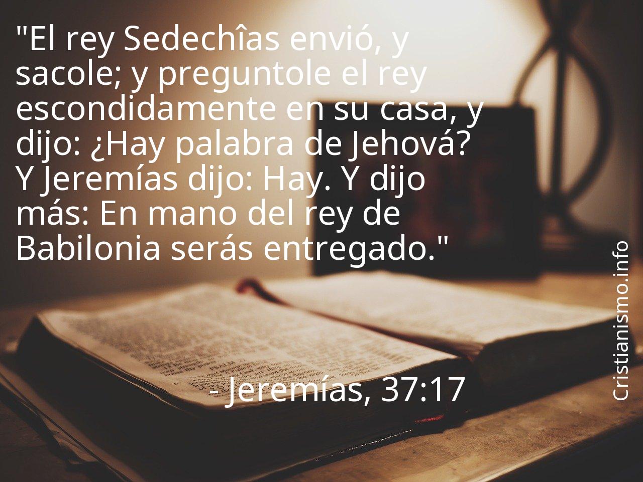 Discurrir y recapacitar acerca de el versículo Jeremías, 37:17 nos ayuda a ser mejores cristianos y a avanzar en nuestro camino hacia la Gracia de Dios, por ese motivo es útil recurrir al versículo Jeremías, 37:17 en todas aquellas ocasiones en que necesitemos palabras que nos inspiren y guíen y así saber qué pasos dar o para traer el sosiego a nuestro espíritu.