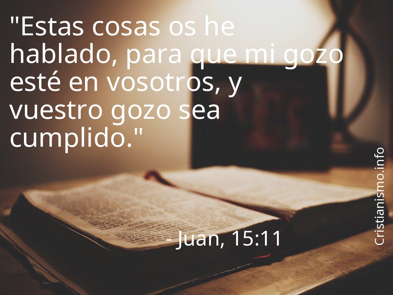 Es aconsejable tomar siempre en cuenta el versículo Juan, 15:11 de La Sagrada Biblia con el objetivo de meditar en torno a él. ¿Qué quiso decirnos Dios con el versículo Juan, 15:11? ¿En qué momentos de nuestra vida cotidiana tenemos la oportunidad de hacer valer aquello que hemos llegado a saber gracias al versículo Juan, 15:11 de La Biblia?