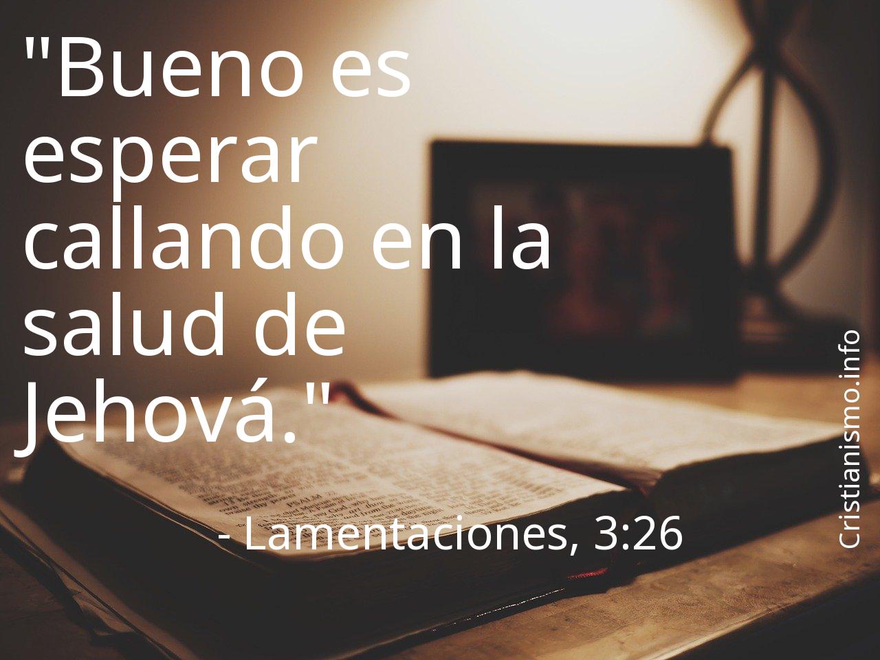 Nos conviene tomar continuamente en consideración el versículo Lamentaciones, 3:26 de los Textos Sagrados que componen la Biblia de manera que podamos reflexionar sobre él. Acaso deberíamos preguntarnos ¿Qué pretendía decirnos Dios Padre con el versículo Lamentaciones, 3:26? ¿Cuáles son las ocasiones de nuestro día a día en que seremos capaces de aprovechar aquello que hemos alcanzado a saber gracias al versículo Lamentaciones, 3:26 de la Santa Biblia?