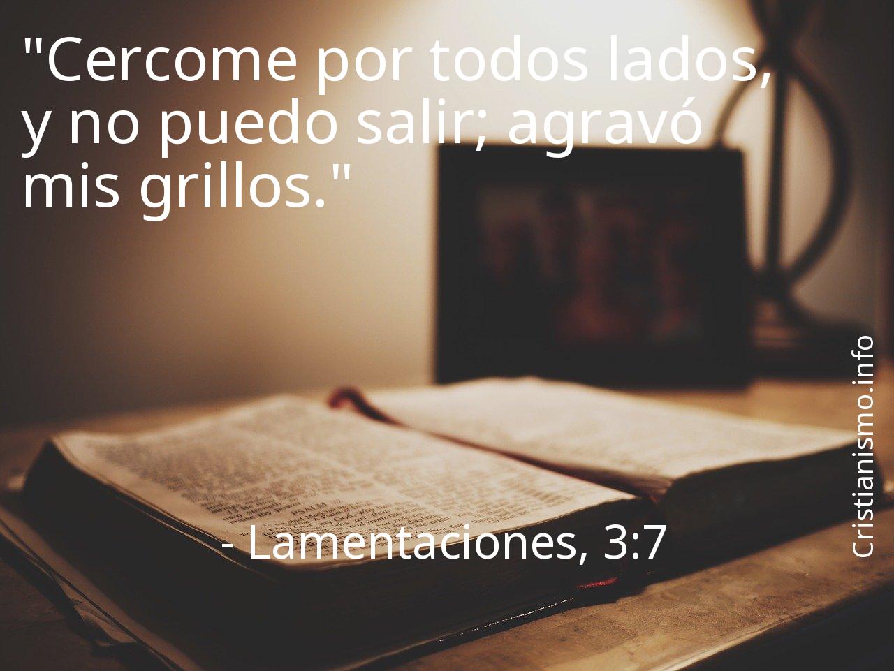 Dedicar tiempo a la meditación sobre el versículo Lamentaciones, 3:7 nos supone una ayuda a ser capaces de acercarnos más al mensaje de Nuestro Señor y a elevar nuestra alma hacia Dios, por ese motivo es bueno acudir al versículo Lamentaciones, 3:7 todas las veces que necesitemos palabras que nos inspiren y guíen para saber cómo actuar o para traer la tranquilidad a nuestras almas.
