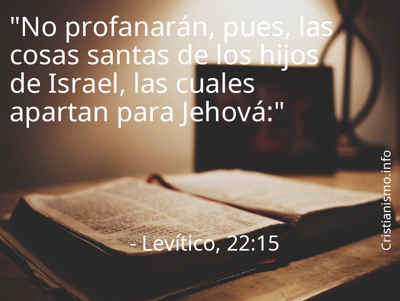 Es conveniente tener continuamente presente el versículo Levítico, 22:15 de La Sagrada Biblia de tal forma que podamos hacer una reflexión en torno a él.Quizás deberíamos preguntarnos ¿Qué trataba de proponernos Dios con el versículo Levítico, 22:15? ¿En qué coyunturas de nuestro día a día tenemos la oportunidad de hacer valer lo que hemos alcanzado a saber gracias al versículo Levítico, 22:15 de La Sagrada Biblia?