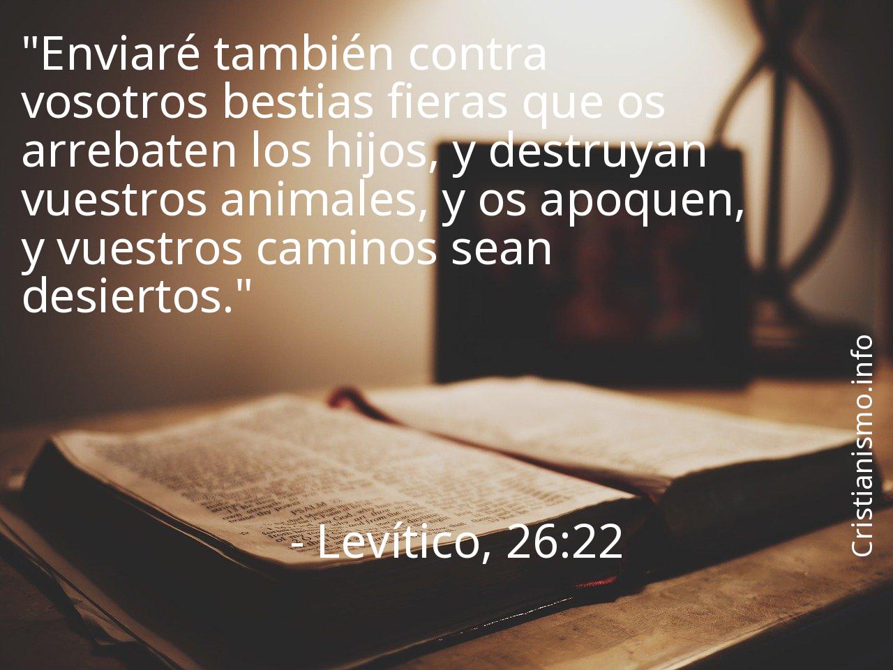 Es preciso tener en todo momento presente el versículo Levítico, 26:22 de La Sagrada Biblia a fin de reflexionar acerca de él.Seguramente deberíamos preguntarnos ¿Qué intentaba proponernos Nuestro Padre que está en los Cielos con el versículo Levítico, 26:22? ¿En qué coyunturas de nuestra vida diaria tenemos la oportunidad de recurrir a lo que hemos llegado a saber gracias al versículo Levítico, 26:22 de Las Sagradas Escrituras?