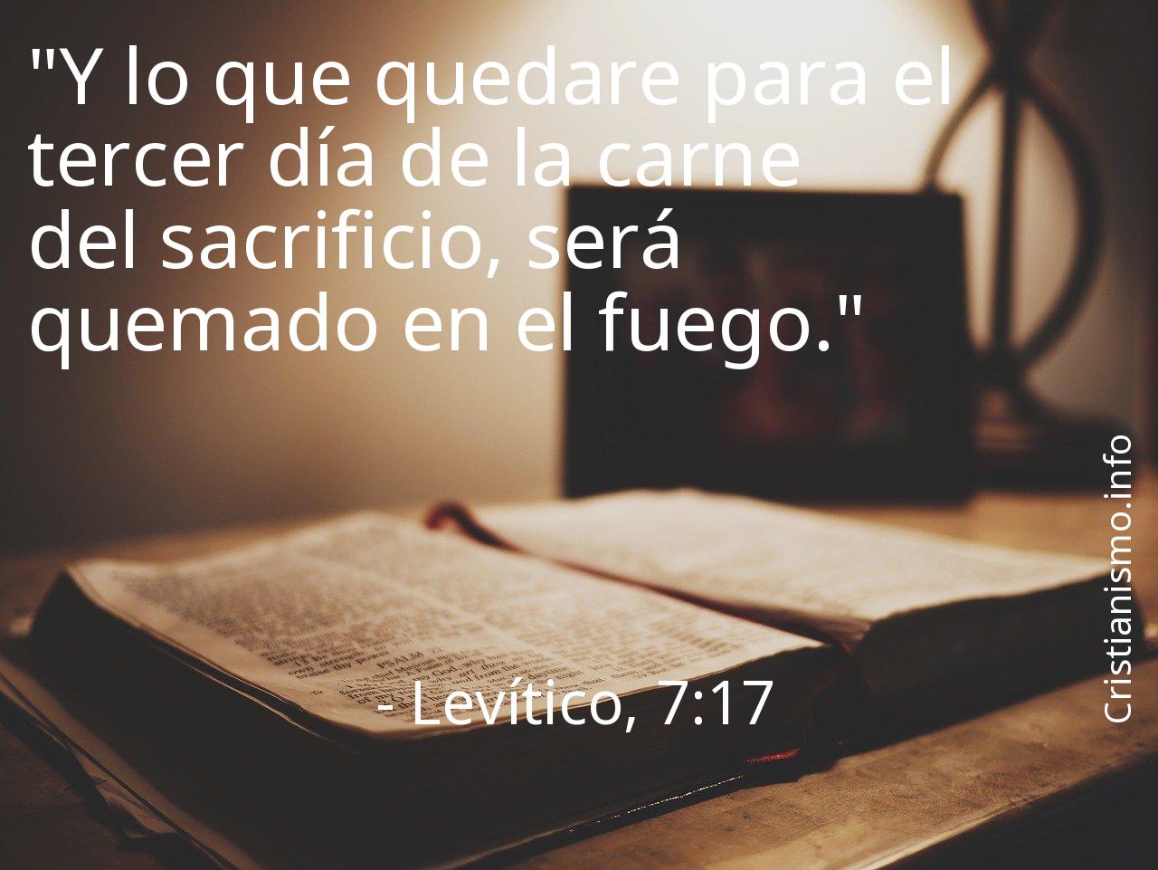 Deberíamos tomar continuamente en consideración el versículo Levítico, 7:17 de los Textos Sagrados que componen la Biblia con el fin de meditar sobre él. ¿Qué intentaba manifestarnos Dios Nuestro Señor con el versículo Levítico, 7:17? ¿Cuáles son los momentos de nuestra vida cotidiana en que seremos capaces de recurrir a aquello que hemos llegado a saber gracias al versículo Levítico, 7:17 de La Biblia?