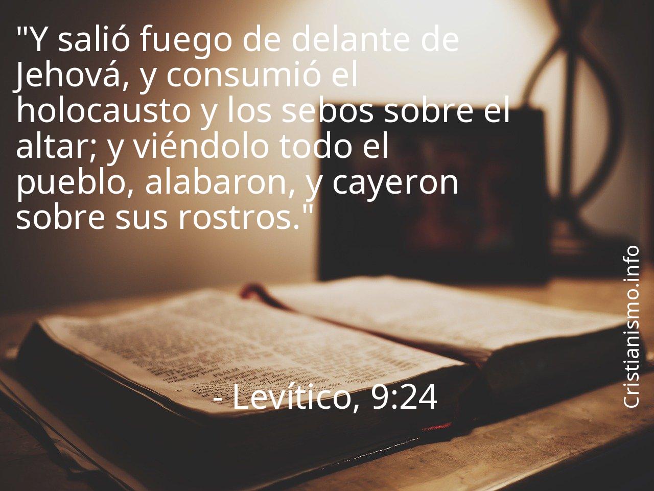 El versiculo Levítico, 9:24 de los Textos Sagrados que componen la Biblia es algo que deberíamos tomar en todo momento en cuenta para hacer una reflexión en torno a él.Tal vez deberíamos hacernos la pregunta ¿Qué trataba de manifestarnos Nuestro Padre Todopoderoso con el versículo Levítico, 9:24? ¿En qué momentos de nuestra vida diaria tenemos la oportunidad de hacer valer lo que hemos alcanzado a saber gracias al versículo Levítico, 9:24 de la Santa Biblia?