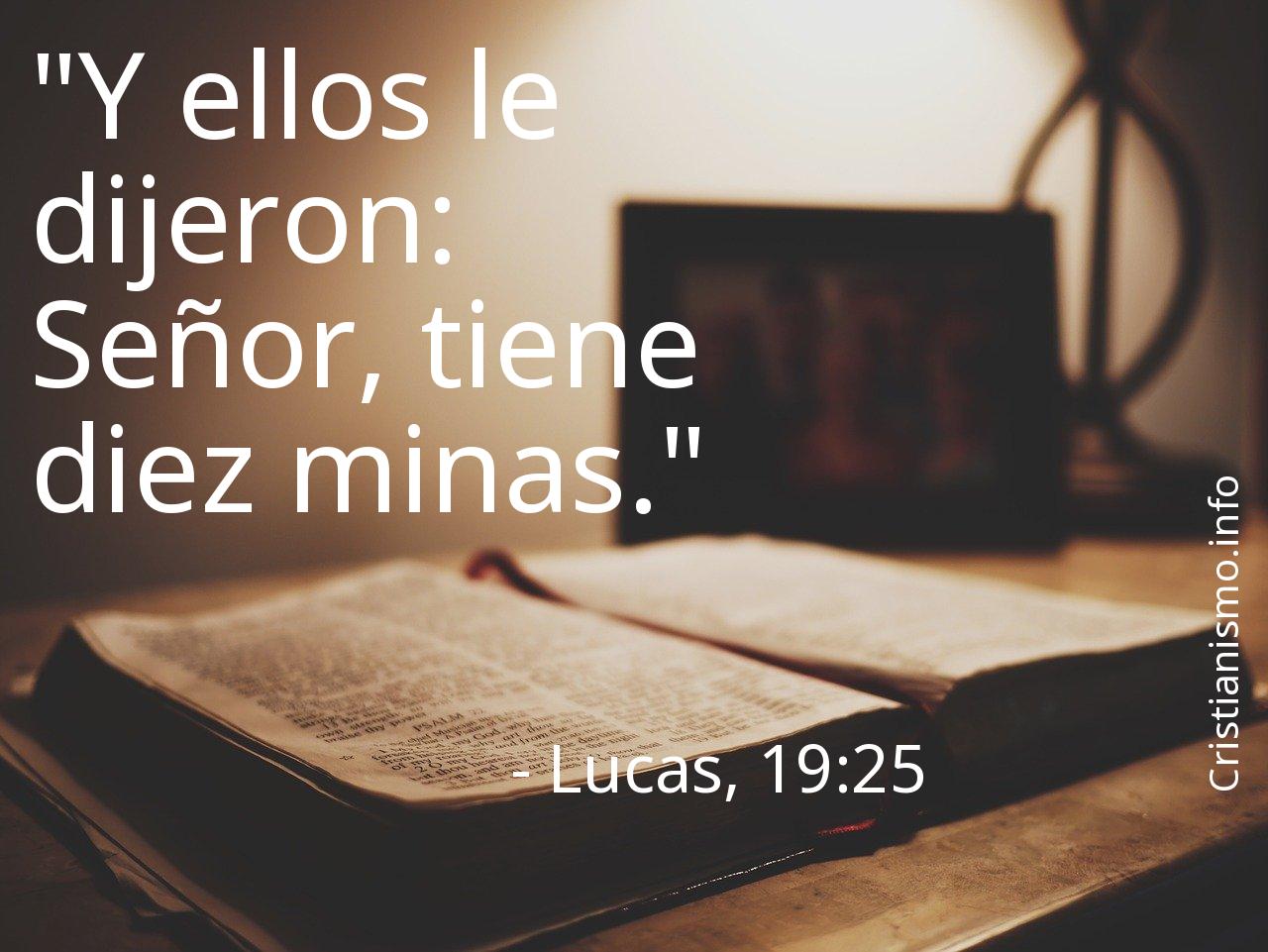 El hecho de reflexionar acerca de el versículo Lucas, 19:25 es un gran aporte que nos permite a ser más agradables a los ojos de el Creador del Cielo y de la Tierra y a acercarnos más a Dios, esa es la razón por la cual es útil recurrir al versículo Lucas, 19:25 en todas aquellas ocasiones en que precisemos que la palabra de Dios, Nuestro Señor nos indique el camino a seguir de modo que podamos saber en qué forma acturar o para traer la tranquilidad a nuestros corazones.