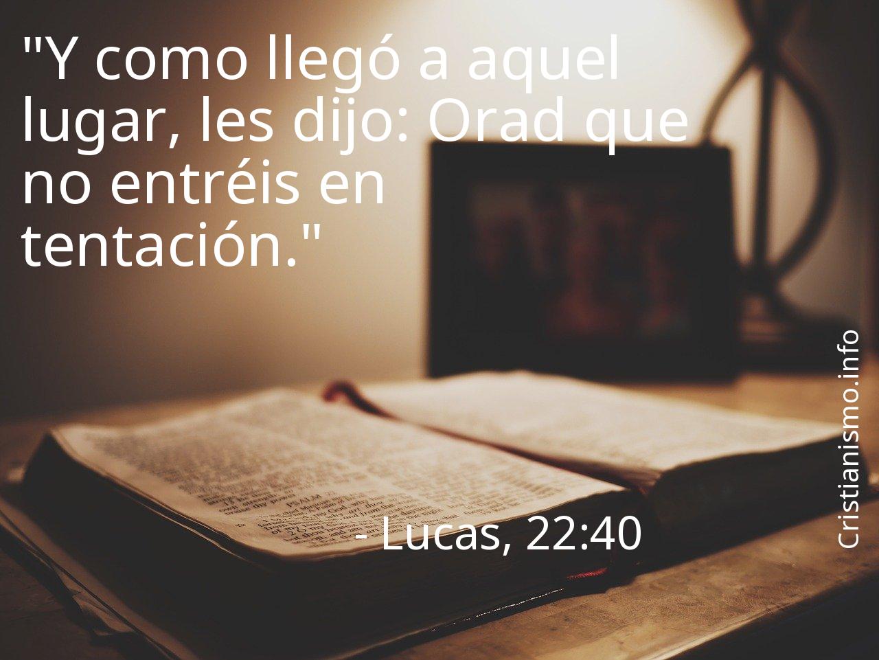 Debemos tomar continuamente en cuenta el versículo Lucas, 22:40 de los Textos Sagrados que componen la Biblia con el objetivo de meditar sobre él.Probablemente sería adecuado preguntarse ¿Qué pretendía manifestarnos Nuestro Padre que está en los Cielos con el versículo Lucas, 22:40? ¿En qué coyunturas de nuestro día a día podemos aplicar lo que aprendemos gracias al versículo Lucas, 22:40 de Las Sagradas Escrituras?