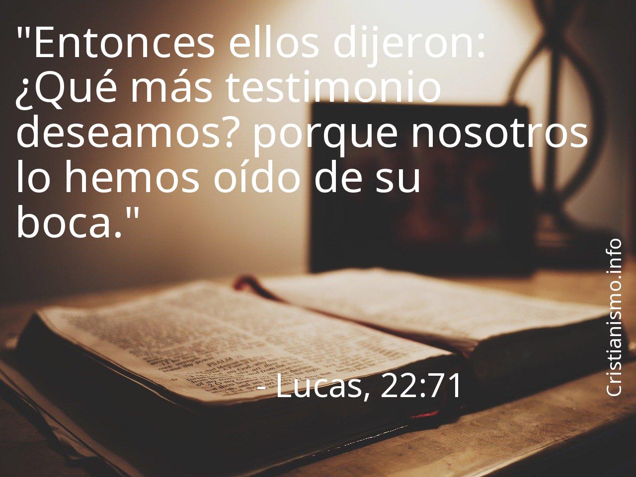 Deberíamos tomar siempre en cuenta el versículo Lucas, 22:71 de La Santa Biblia con el objetivo de analizarlo y pensar sobre él.Tal vez sería acertado cuestionarse ¿Qué quiso decirnos Nuestro Padre que está en los Cielos con el versículo Lucas, 22:71? ¿En qué coyunturas de nuestra vida cotidiana podemos aplicar aquello que hemos aprendido gracias al versículo Lucas, 22:71 de la Santa Biblia?