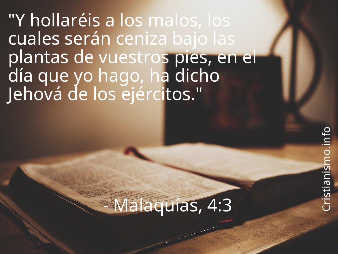 El versiculo Malaquías, 4:3 de los Textos Sagrados que componen la Biblia es algo que debemos tomar constantemente en consideración de manera que podamos meditar sobre él.Tal vez sería acertado cuestionarse ¿Qué pretendía decirnos Dios Nuestro Señor con el versículo Malaquías, 4:3? ¿En qué momentos de nuestro día a día tenemos la oportunidad de hacer valer lo que aprendemos gracias al versículo Malaquías, 4:3 de la Santa Biblia?