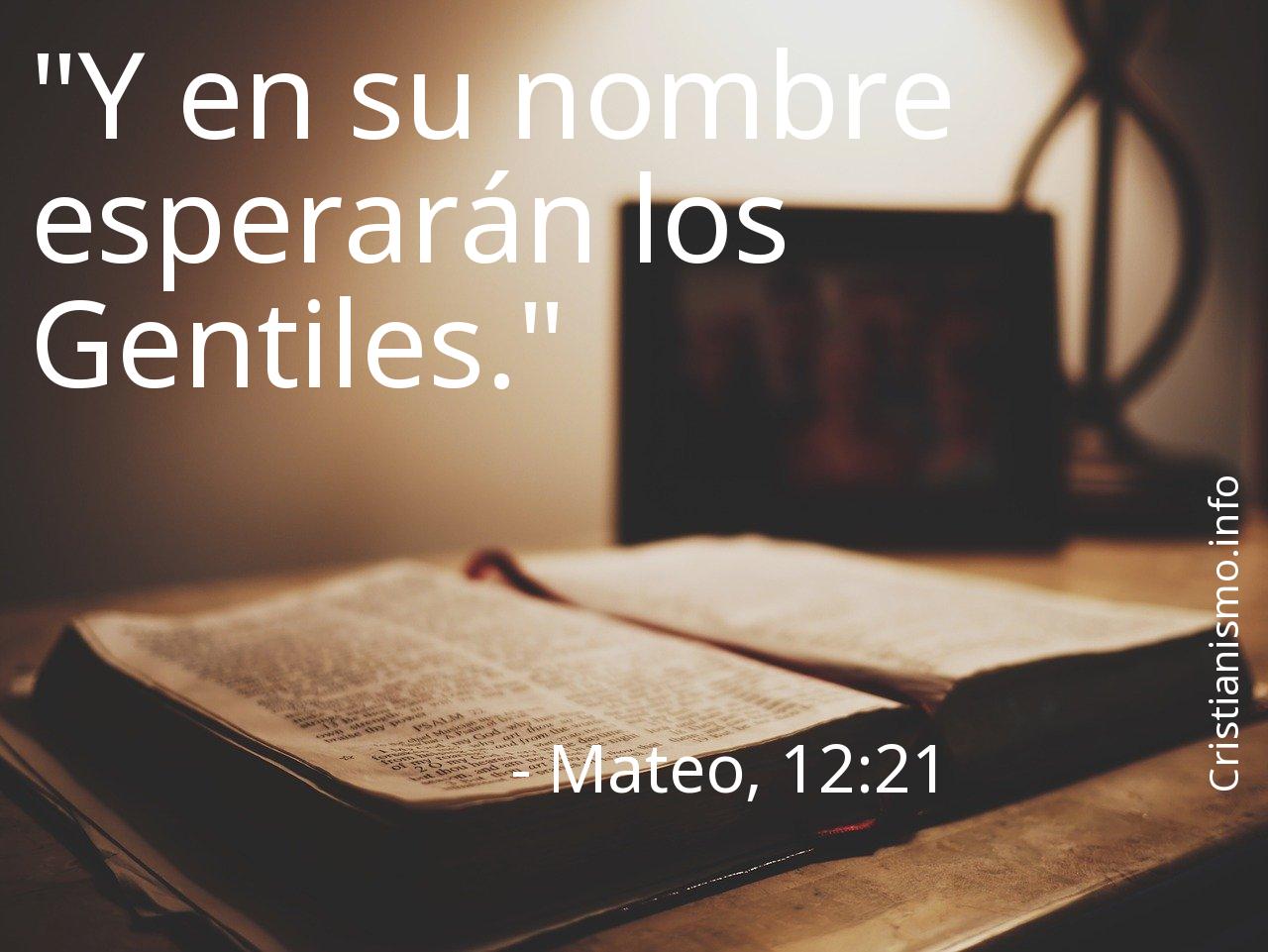 El versiculo Mateo, 12:21 de La Sagrada Biblia es algo que es muy recomendable tener continuamente presente con el propósito de analizarlo y pensar acerca de él.Quizás deberíamos hacernos la pregunta ¿Qué pretendía proponernos Nuestro Padre que está en los Cielos con el versículo Mateo, 12:21? ¿Cuáles serán las coyunturas de nuestro día a día en que tenemos la oportunidad de hacer valer lo que aprendemos gracias al versículo Mateo, 12:21 de Las Sagradas Escrituras?