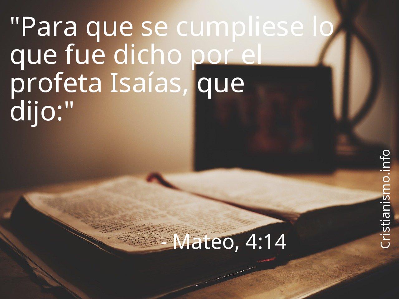 Reflexionar acerca de el versículo Mateo, 4:14 nos ayuda a ser capaces de acercarnos más al mensaje de Nuestro Señor y a acercarnos más a Dios, por esa razón es oportuno apoyarse en el versículo Mateo, 4:14 cada vez que pueda servirnos de guía y así saber cómo proceder o para traer la serenidad a nuestros corazones y almas.